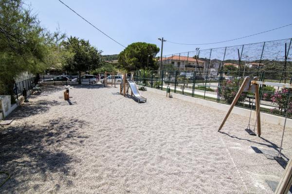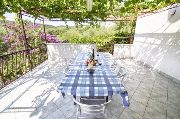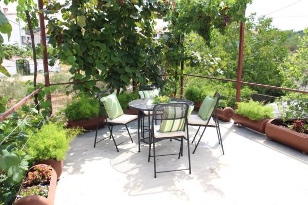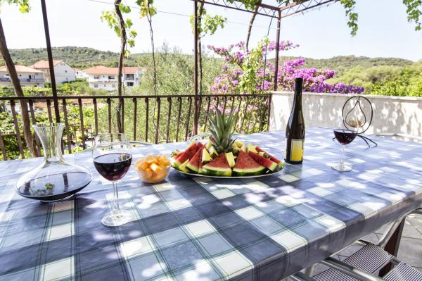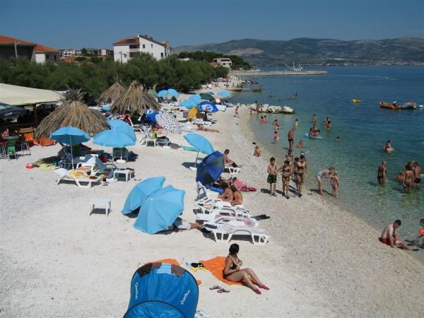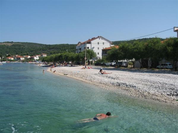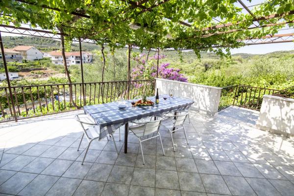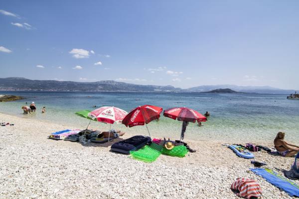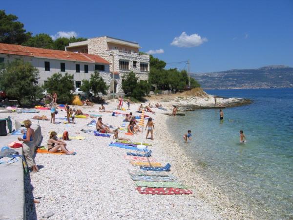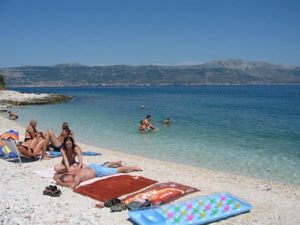 Apartamentele sunt situate într-o casă familială pe un teren privat de 2000 m2 acoperit cu plante mediteraneene, mandarine, portocale, lămâi, smochine și măsline. Fiecare apartament are o terasă mare în umbra naturală a viței de vie cu masă și scaune. Toate apartamentele sunt complet mobilate și echipate, așa că tot ce aveți nevoie sunt prosoape de plajă și de igienă. Iarba naturală la umbra unui măslin este potrivită pentru a se juca copiii mici. Toate apartamentele sunt dotate cu aer condiționat. O terasă comună de 150 m2 cu grătar și masă în umbra naturală a kiwi este la dispoziție oaspeților pentru eventualele adunări. De asemenea, sunt disponibile un duș în aer liber și șezlonguri. O parcare împrejmuită pentru vehicule este, de asemenea, prevăzută în incinta tuturor apartamentelor. Cea mai apropiată plajă este la 140 m de apartament. Celebra plajă naturală Kava este la 3 km de apartament. La 5 minute de apartament se află debarcaderul bărcii turistice care leagă Slatine de Split și Trogir de mai multe ori pe zi.
