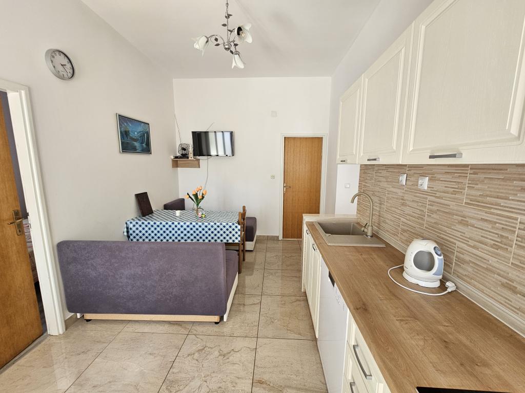 Ne-a plăcut foarte mult apartamentul, ne-a impresionat mai ales terasa mare cu o minunată vedere panoramică la mare. Plaja este aproape, marea este extrem de curata. Gazdele sunt foarte prietenoase și de ajutor, fac tot posibilul pentru confortul oaspeților. În fiecare an vacam în Croația, dar nu am experimentat niciodată o astfel de ospitalitate ca aici. Am fost foarte multumiti si cu siguranta vom reveni.