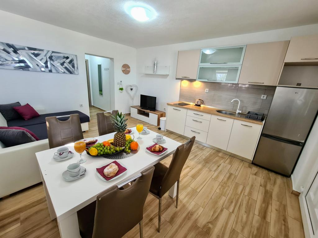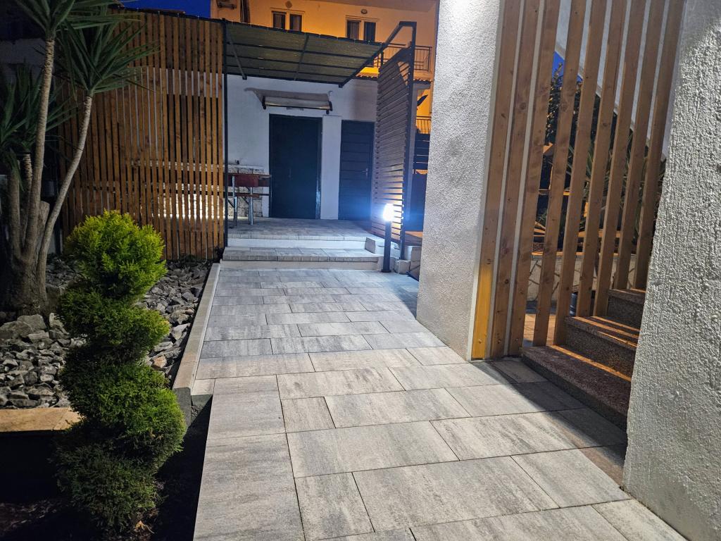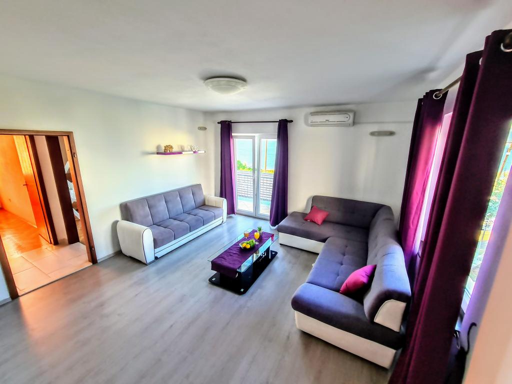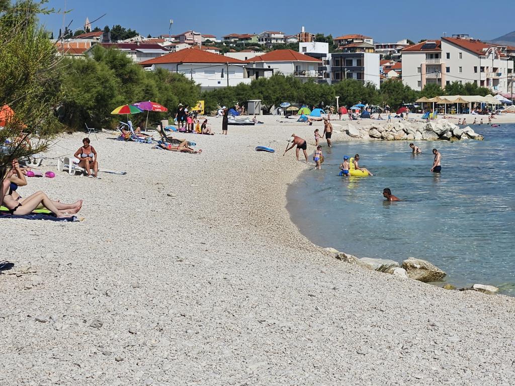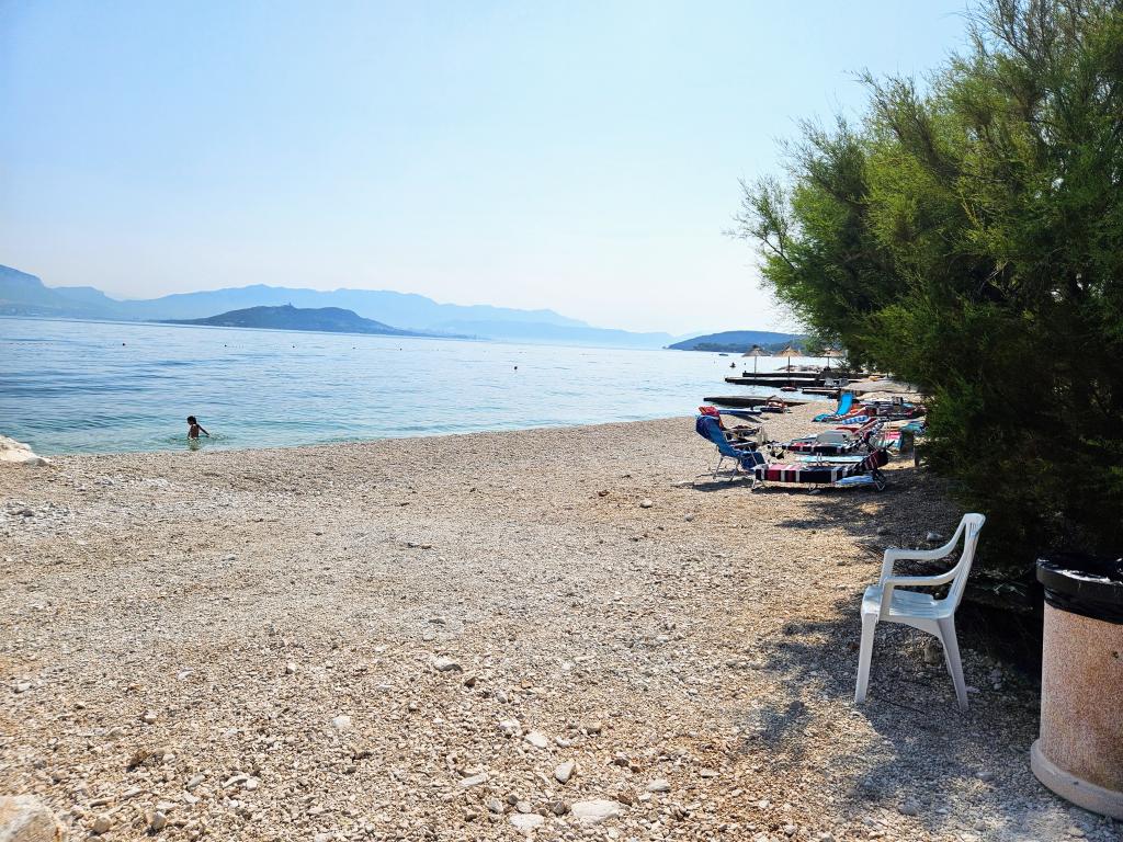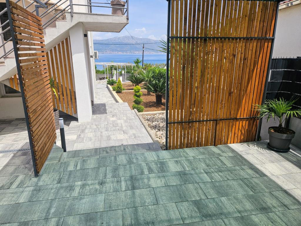 Apartamentele Villa Palma din Slatine sunt la 15 m de mare. Toate apartamentele au vedere la mare. Apartamentele sunt confortabile si dotate cu: aer conditionat, sat/tv, wi-fi. Sunt situate pe o suprafata de 1000 m2.In fata apartamentului se afla o gradina frumos amenajata cu gratar unde va puteti bucura de socializarea cu prietenii cu plante mediteraneene.Sunt situate intr-o pozitie ideala, la 300 m de centru. si la 15 m de mare, ca sa poti petrece in liniste, bucurandu-te de mare si de soare, si in acelasi timp, daca vrei o vacanta mai activa, in centrul orasului sunt baruri pe plaja, cafe-baruri. , restaurante și terenuri de sport.Oaspeții au la dispoziție parcare și un garaj unde vă puteți lăsa lucrurile pentru plajă.De asemenea, în față apartamentul are și o grădină de 150 m2, care este potrivită pentru joaca copiilor în timp ce veți urmări copiii în gradina de la terasa.Gazdele prietenoase vor fi bucuroase sa va ajute sa va organizati excursii, picnic cu peste, sa inchiriati o barca, bicicleta, scuter... precum si totul printre altele! Slatine este conectata printr-o linie de barca cu Split si Trogir de mai multe ori pe zi!