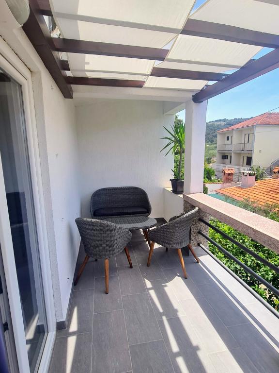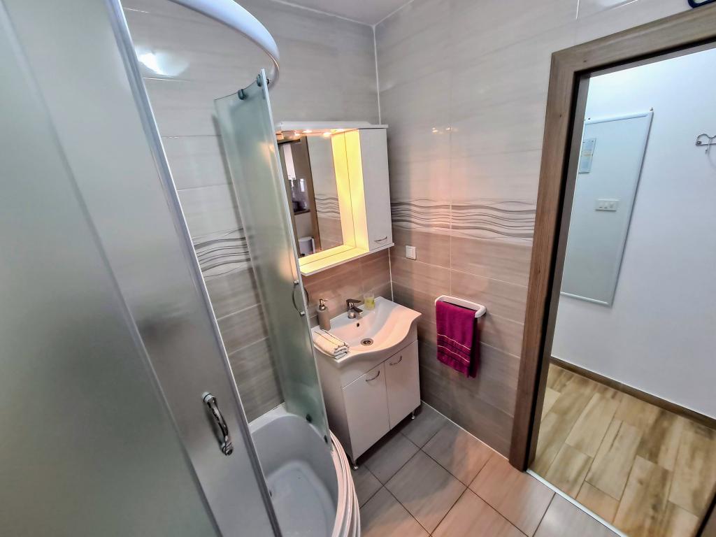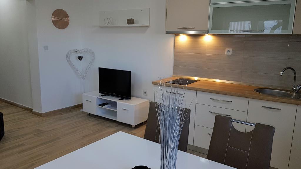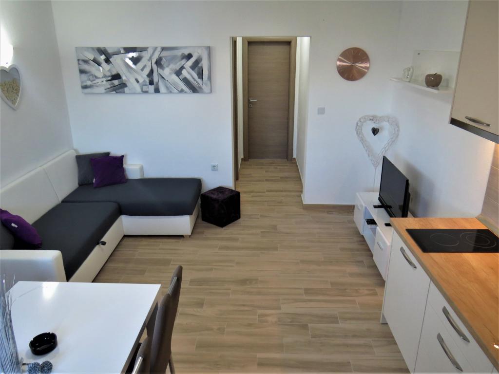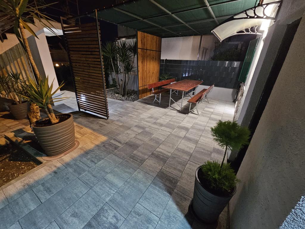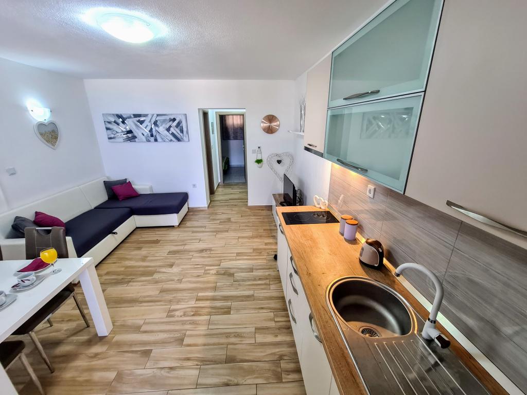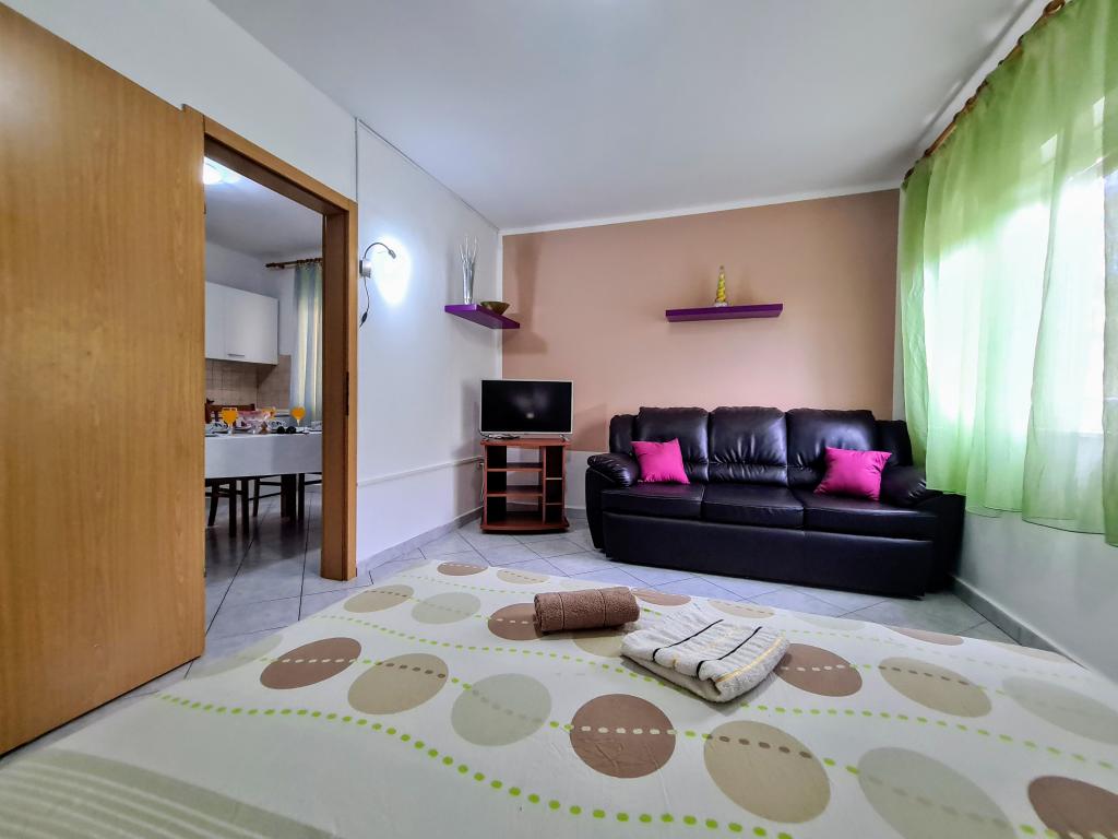 Apartamentele Villa Palma din Slatine sunt la 15 m de mare. Toate apartamentele au vedere la mare. Apartamentele sunt confortabile si dotate cu: aer conditionat, sat/tv, wi-fi. Sunt situate pe o suprafata de 1000 m2.In fata apartamentului se afla o gradina frumos amenajata cu gratar unde va puteti bucura de socializarea cu prietenii cu plante mediteraneene.Sunt situate intr-o pozitie ideala, la 300 m de centru. si la 15 m de mare, ca sa poti petrece in liniste, bucurandu-te de mare si de soare, si in acelasi timp, daca vrei o vacanta mai activa, in centrul orasului sunt baruri pe plaja, cafe-baruri. , restaurante și terenuri de sport.Oaspeții au la dispoziție parcare și un garaj unde vă puteți lăsa lucrurile pentru plajă.De asemenea, în față apartamentul are și o grădină de 150 m2, care este potrivită pentru joaca copiilor în timp ce veți urmări copiii în gradina de la terasa.Gazdele prietenoase vor fi bucuroase sa va ajute sa va organizati excursii, picnic cu peste, sa inchiriati o barca, bicicleta, scuter... precum si totul printre altele! Slatine este conectata printr-o linie de barca cu Split si Trogir de mai multe ori pe zi!