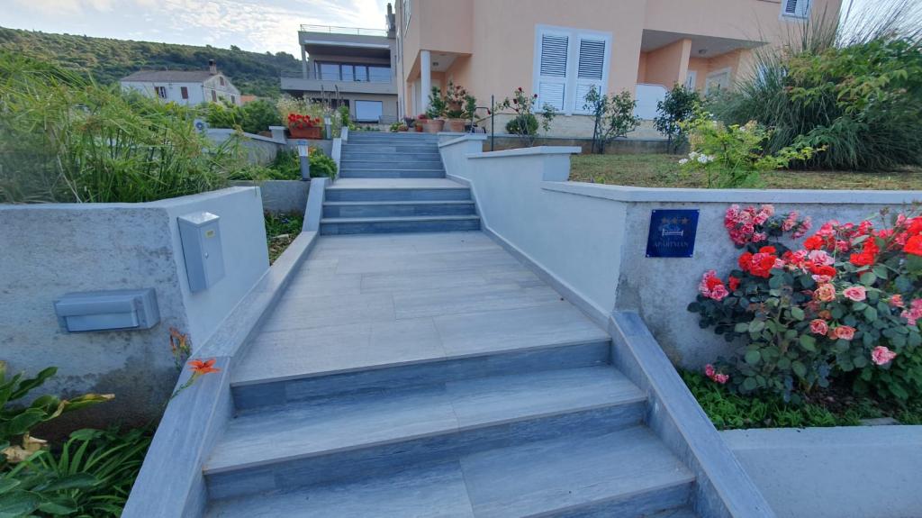 Apartamente noi-nouțe, complet utilate, în satul liniștit și pitoresc Soline, în partea de nord-vest a insulei Dugi Otok. Apartamentele sunt situate în primul rând la mare și se află la doar 30 de metri de cea mai apropiată plajă cu pietriș din sat și la 10 minute de mers pe jos de una dintre cele mai frumoase plaje cu nisip de la Marea Adriatică, Golful Sakarun.