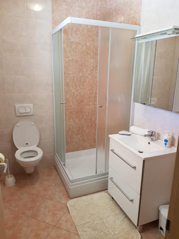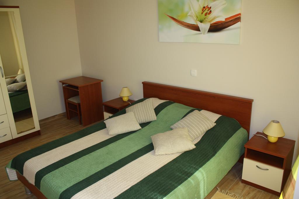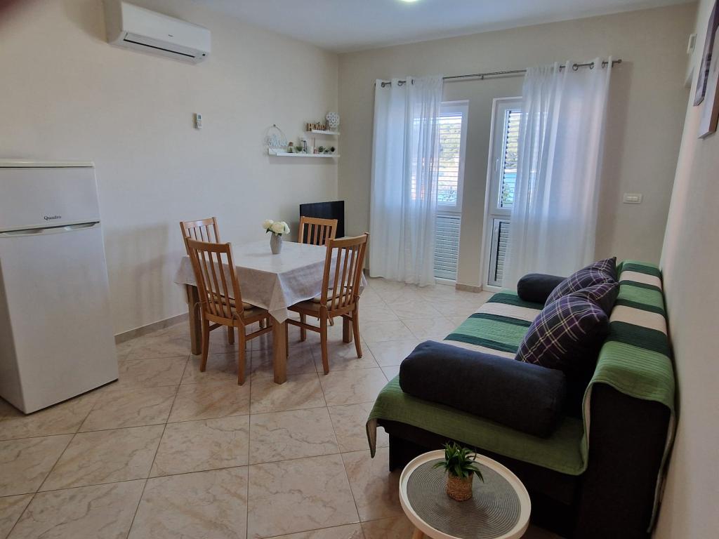 Apartamentul (cel din dreapta, la parter) a fost suficient de mare pentru o familie de patru persoane, am fost întâmpinați de un apartament complet curățat, decorat și ordonat. Singurul lucru pe care a trebuit să-l facem a fost să aranjăm singuri canapeaua extensibilă pentru ca copiii să doarmă seara. Gazda este extrem de politicoasă și amabilă și a menționat de mai multe ori că ar trebui să-l contactăm pentru orice avem nevoie. În fiecare zi ne spunea câteva cuvinte, întotdeauna cu un interes sincer. De asemenea, făcea curățenie în fiecare zi în zona din jurul casei, care arată într-adevăr impecabil, o adevărată mică odihnă pentru ochi. A fost înțelegător pentru exercițiile mele de dimineață pe verandă. Cât despre dotări, bucătăria are tot ce ai nevoie pentru gătit, cu excepția faptului că tigaia era puțin nepotrivită pentru clătite, dar ne-am descurcat. La aproximativ 200 de metri de casă există un mic magazin cu nu prea multe opțiuni, dar este un mare avantaj că există un magazin în sat, dacă vii la timp joia sau marțea, cred că poți găsi fructe și legume proaspete proaspăt coapte. Există și câteva produse de panificație care sunt de fapt foarte gustoase. Vânzătorul este un localnic amuzant, există o atmosferă plăcută atât în magazin, cât și în împrejurimi, deoarece după-amiaza localnicii se adună și se distrează împreună, aflând povești de vânătoare. Cafeneaua locală la 100 m de casă este, de asemenea, interesantă și plăcută, deși prețurile sunt ca și cum aș fi pe malul apei din Split. Se află la 20 de minute de mers pe jos până la Sakarun, ceea ce nu a fost o problemă nici măcar pentru copii. Sakarun este minunat, deși nu mai curăță straturile de Posidonia, dar odată ce intri prin iarbă până la nisipul curat, culoarea mării este cu adevărat uluitoare. Cea mai frumoasă plajă de pe Dugi a fost Veli Žal, iar dacă vrei să te bucuri de ea, îți sugerez cu tărie să mergi la ora 7 și să rezervi una dintre căsuțele din copaci, altfel vei sta la soare. Prețul cazării a fost conform așteptărilor și complet justificat.