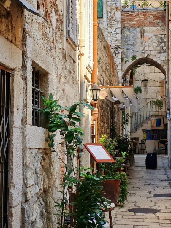Garsoniera pentru două persoane este situată într-o zonă liniștită a orașului Split, aproape de Parcul Forestier Marjan și aproape de centrul orașului. Parcarea este publică lângă apartament, gratuită. In apropiere se afla facilitati precum plaje in parcul forestier, pista de jogging, restaurante, facilitati sportive, magazine, posibilitate de transport in oras, o piata. Apartamentul este situat la parter inconjurat de verdeata. Este posibil accesul persoanelor cu dizabilități din stradă. Fumatul nu este permis în apartament.