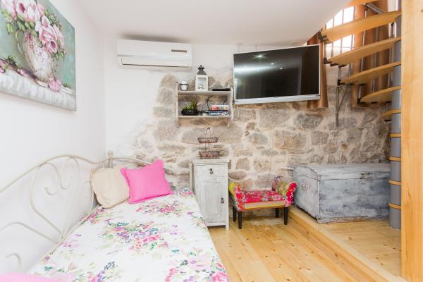 Dama este o mică casă dalmată situată în centrul orașului, într-o locație liniștită. Casa poate gazdui 3 persoane. Se compune dintr-un parter cu o bucatarie, un living si o baie, apoi o mansarda joasa cu un dormitor si o gradina cu o canapea. Gazda nu locuieste acolo, dar iti sta mereu la dispozitie. Vino și petrece o vacanță de neuitat. Nu avem loc de parcare privat! Parcare publica in imediata apropiere a casei.