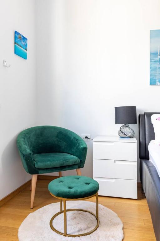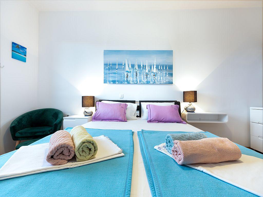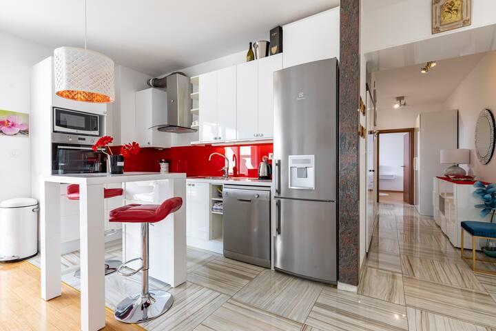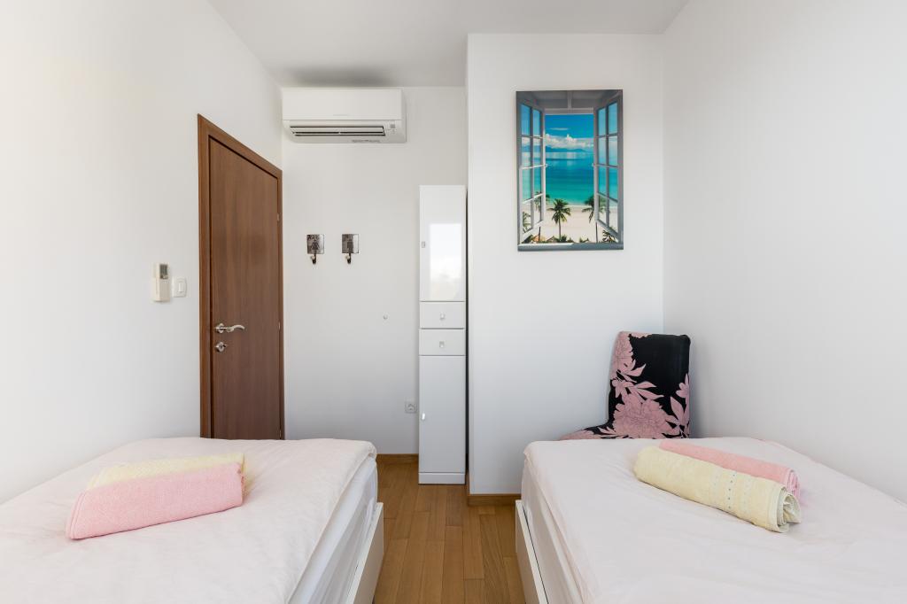 Bačvice, apartament cu 2 dormitoare, 3 aparate de aer condiționat, terasă, loc de parcare în garaj, lift, la 2 minute de plajă, la 10 minute de mers pe jos de centru. Acest frumos apartament cu două dormitoare din centrul orașului Split are 70 m2, terasă, cadă cu hidromasaj în baie, aer condiționat în fiecare cameră. Marea este la 50 m distanță. Această cazare unică este situată în apropierea tuturor punctelor de interes, ceea ce facilitează planificarea vizitei. Centrul orașului și vechiul Palat al lui Dioclețian se află la 15 minute de mers pe jos. Avem propriul loc de parcare în garaj și puteți lua liftul din garaj până la apartament. Apartamentul este situat la etajul 3 al unei clădiri noi. Supermarket -300m, Restaurante -100m, Cafenea -50m, Excursii cu barca -500 m, port de feribot -200 m, autogară -200 m. Cheile apartamentului și ale garajului se află în seiful cu chei de la parterul clădirii. Veți primi codul pentru seif prin e-mail după ce faceți rezervarea.