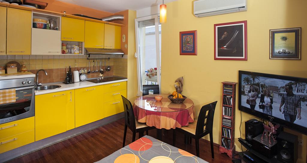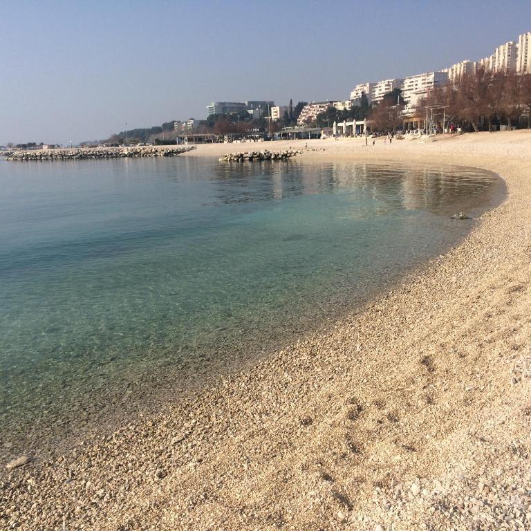 Apartament SUNNY YELOW cu balcon și loc de parcare este situat pe plaja ŽNJAN, la 100 m de cea mai bună plajă cu pietriș din Split și de o promenadă lungă pe malul mării. Plaja ŽNJAN este o plajă lungă de un kilometru, care oferă multe baruri și restaurante. La doar 20 m de apartament se afla un bistro - cafenea, la 50 m se afla un magazin, la 3,6 km se afla Palatul lui Diocletian. Apartamentul dispune de WI-FI gratuit, aer conditionat, TV, radio cu CD. Există, de asemenea, o bucătărie complet utilată, cu mașină de spălat vase și cuptor. Baia este dotată cu mașină de spălat, articole de toaletă gratuite și prosoape. Din baie vă puteți bucura de o vedere frumoasă la grădină. In fata apartamentului se afla un loc de parcare ce apartine apartamentului, si un gratar in aer liber cu masa de piatra si bancute unde puteti pregati si savurati preparate la gratar. Dacă doriți să vizitați împrejurimile, există Catedrala Sf. Domnius - 34 km), Muzeul Orașului Split (3,4 km), Aeroportul Split este la 15 km de apartamente.