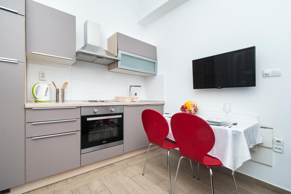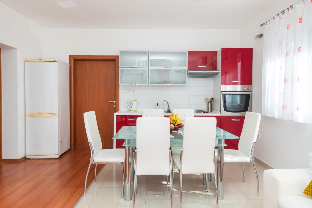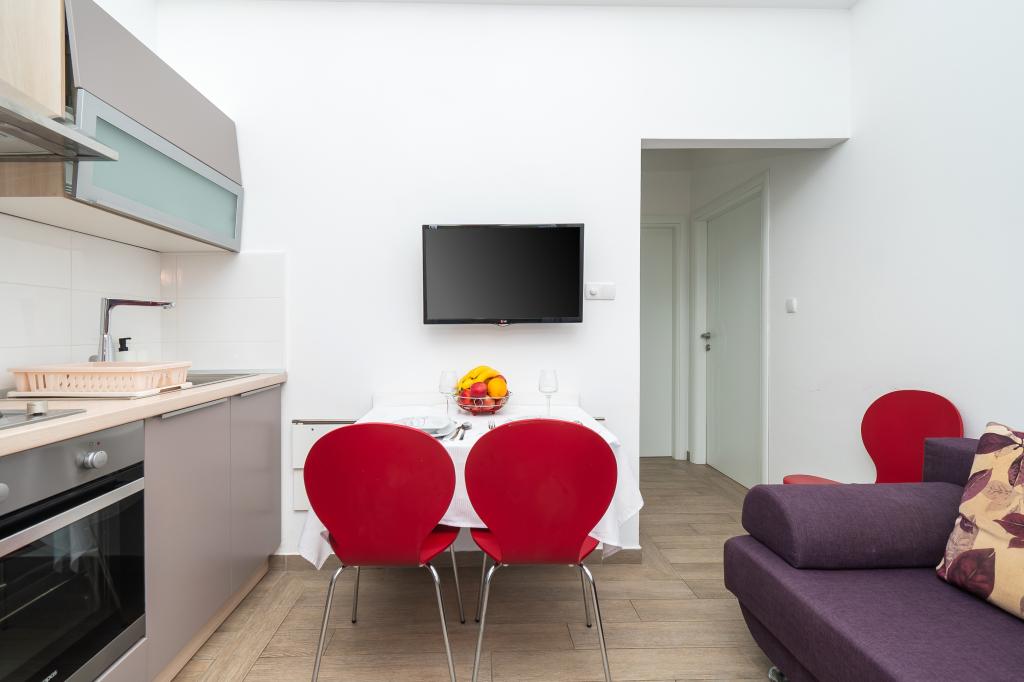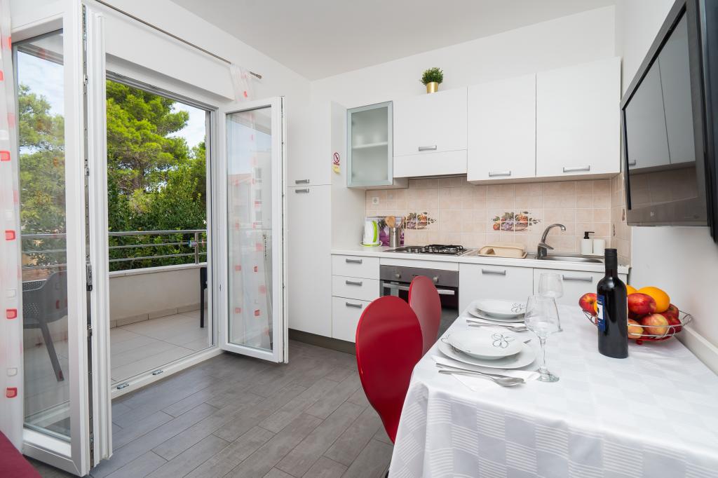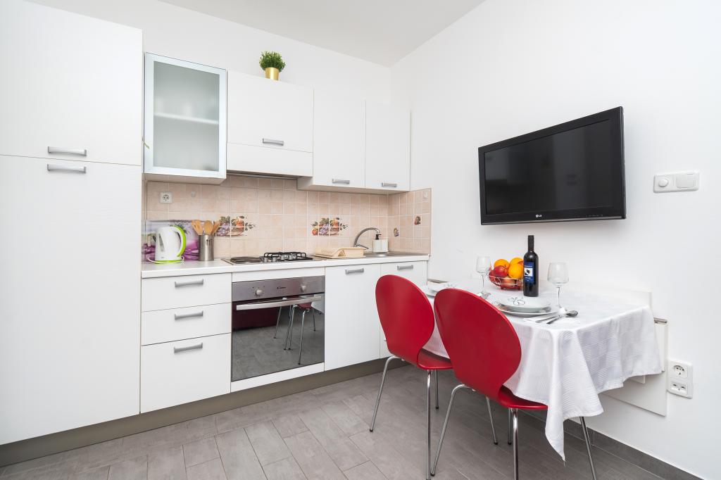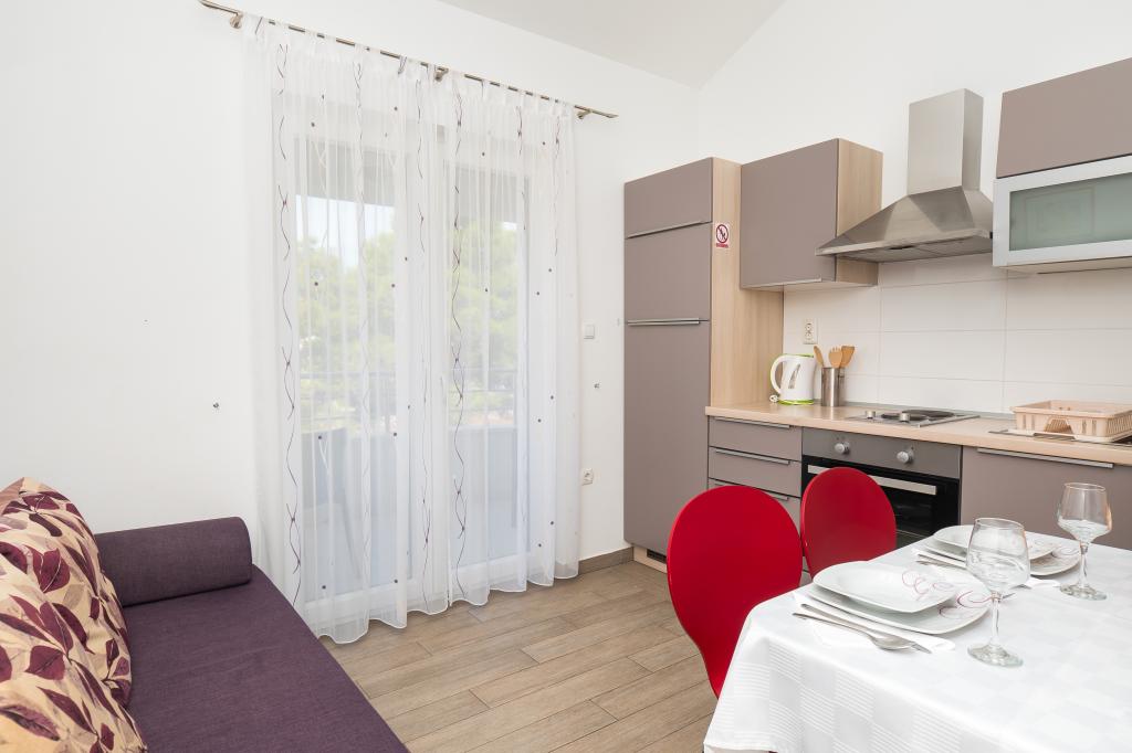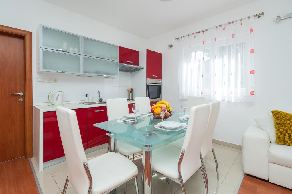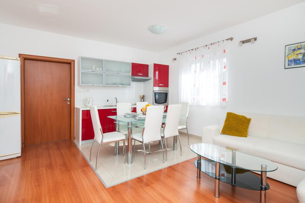 Recomandăm aceste apartamente !!! Acestea sunt frumoase, foarte bine echipate și curat. Într-o zonă liniștită și aproape de mare .Krásná plimbați în Vodice este doar 30min.pěšky. Există o mulțime de oportunități pentru lotul děti- cursuri atracții atd.Vlastnici sunt oameni foarte frumos și acesta este un Salute.
