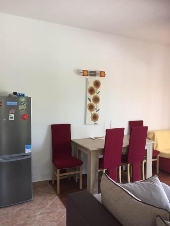 Apartamente complet echipate într-o zonă liniștită din Srima, la 60 de metri de plaja de nisip. În apropiere se află un loc de joacă pentru copii, promenadă, restaurant, magazin .... Apartamentele sunt complet mobilate. În fața apartamentului există o terasă cu parcare gratuită. Un loc ideal pentru o vacanță de familie cu copii, Alături de casa cu 4 apartamente, avem și o casă de vacanță pentru patru persoane. Acestea sunt situate unul în altul. Animalele de companie sunt acceptate cu acordul prealabil Avem opțiunea de a introduce un pătuț în dormitor.