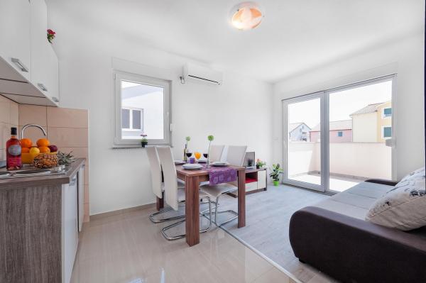 Complet echipate și modern, cu piscină, nou-construite apartamente într-o zonă liniștită din Srima (Vodice) lângă Sibenik. 100m Situat la mare. TV prin satelit, Wi-Fi, aer condiționat, curte gratar, pat copii. La câteva minute de mers pe jos de centrul orașului. Toate apartamentele au balcoane și vedere la mare. Apartamente în curte cu piscina, gratar, șezlonguri și o masă mare cu scaune.