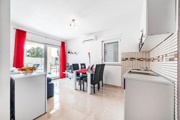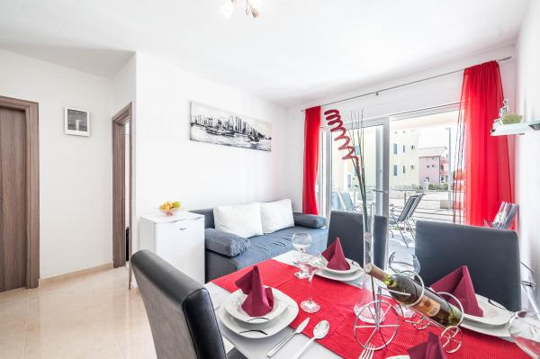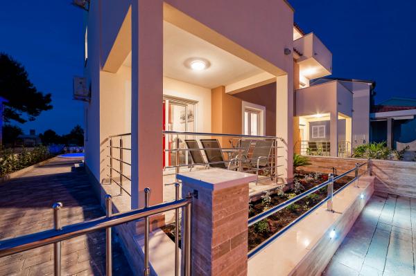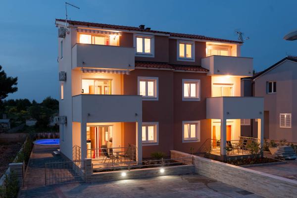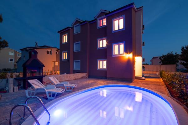 Katarina Apartamentele sunt situate într-o casă familială, într-o zonă liniștită din Srima. Facilitatea este complet nou mobilat cu mobilier modern. Se află la doar 100 de metri de mare și plaje frumoase. Toate apartamentele au vedere la mare. La dispoziția dumneavoastră este o piscină în aer liber și grătar, cu un pridvor, cu masă și scaune. Apartamentele sunt dotate cu aer condiționat, TV prin satelit, un televizor LCD mare.