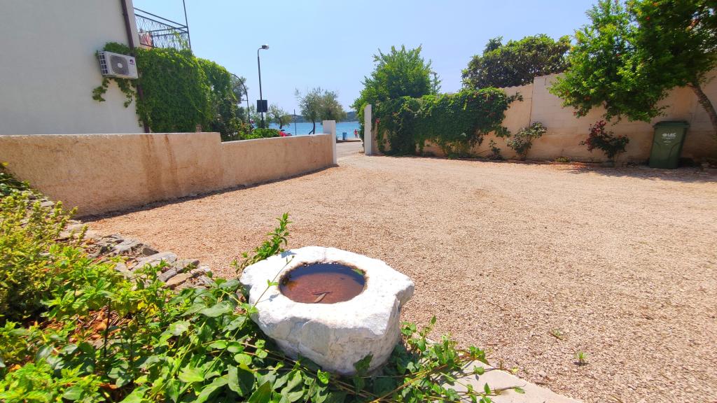 Taxa de rezidenta este inclusa in pret.Curtea casei noastre familiale, împreună cu parcarea, este un loc unde oaspeții noștri se pot relaxa în afara apartamentului pe timp de vară. Am pus în prim-plan grătarul cu o masă și un foișor acoperit pe care oaspeții îl pot folosi singuri sau prin aranjament cu gazda... posibilitatea de a face duș în dușul exterior din curte și de a vă relaxa stând la umbra măslinului nostru bătrân, cu mirosurile plantelor indigene din zona stâncoasă...