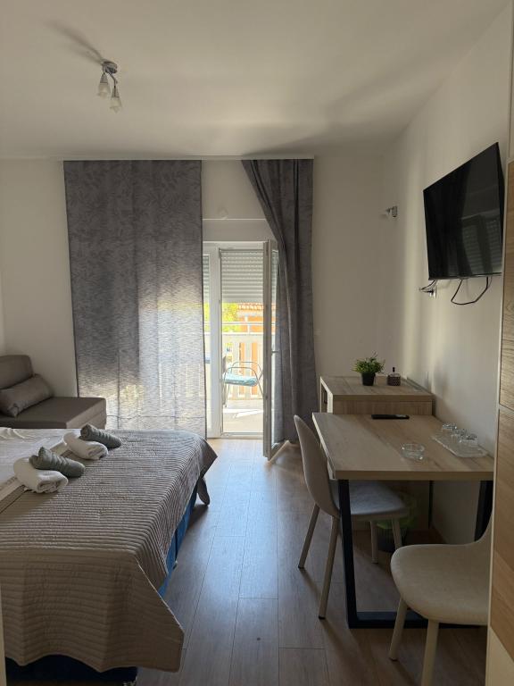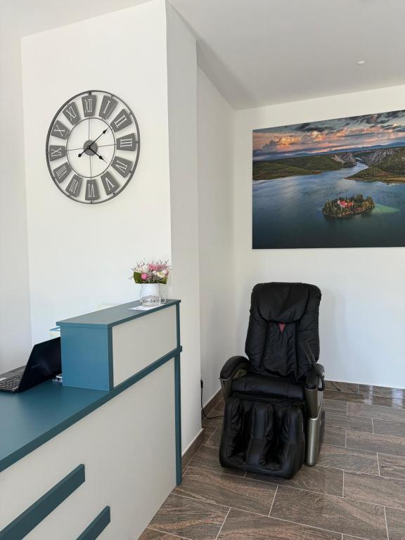 Complex recent renovat, situat în primul rând la mare, în orașul Srima, unde există o plajă cu nisip și pietriș, în apropierea complexului există o brutărie, magazin, restaurant la 200 m de mers pe jos, la 1 km de-a lungul promenadei până la Vodice, sunt disponibile camere duble cu pat suplimentar, ideale pentru călătorii individuali, cupluri și oameni de afaceri. Oferta include un apartament studio cu chicinetă și apartamente cu dormitor separat. Unitățile de cazare sunt situate la etajele 1 și 3 ale clădirii. Există un lift în complex. Fiecare cameră este o unitate de cazare separată.
