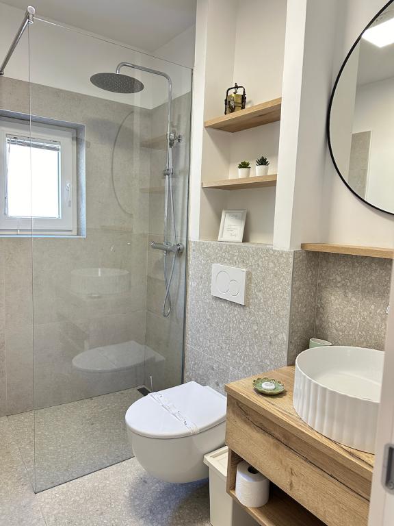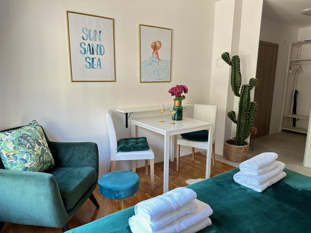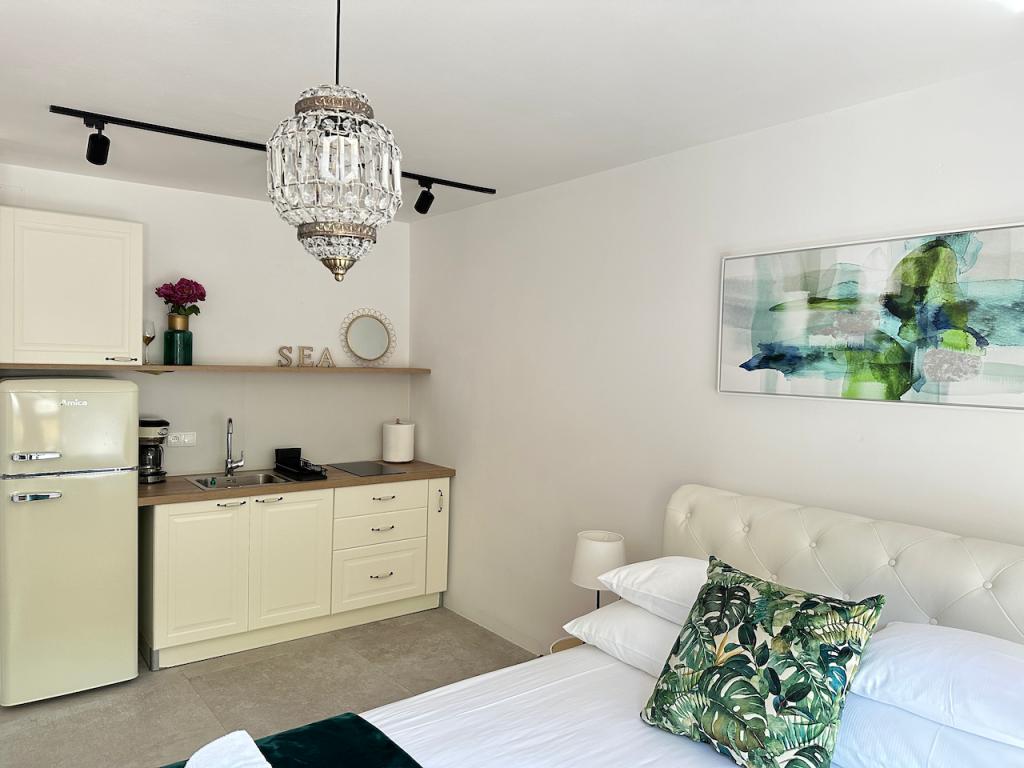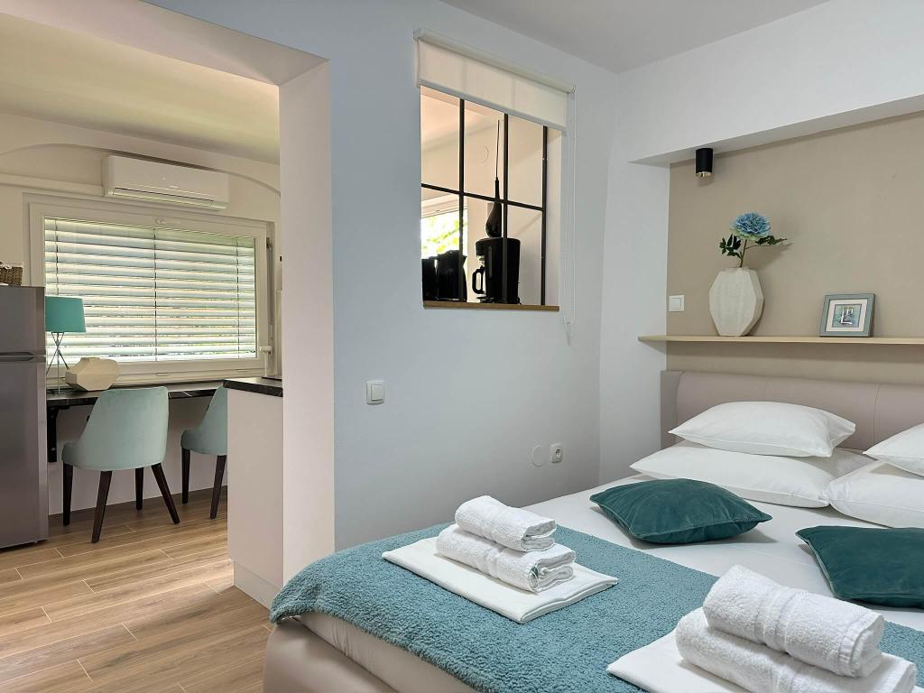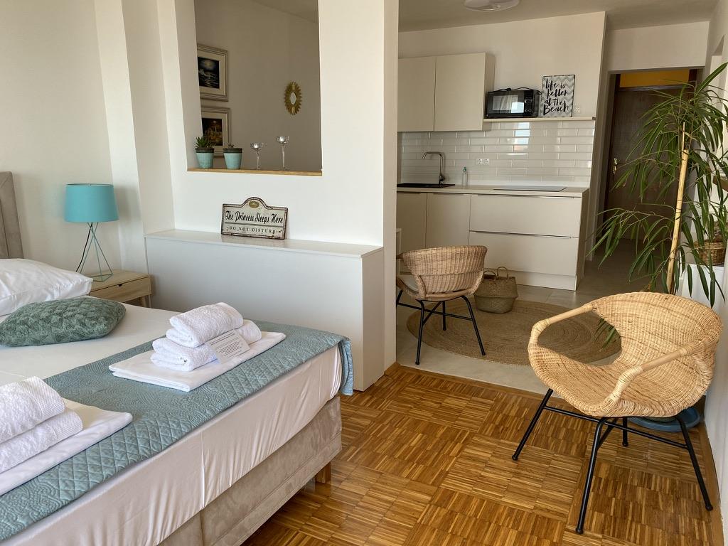 Înconjurat de soare verde, Residence este situată în vechea Baska, la 150 de metri de țărm. Deși casa este în inima vechiului sat, este la doar câțiva pași distanță de plajă. Puteți alege între mai multe apartamente, unde puteți găzdui între 2 și 5 persoane. Fiecare apartament are o terasă proprie cu vedere la mare, unde vă puteți bucura de nopți lungi de vară în compania unui prieten sau a unei familii. Ne-am ocupat de accesul la internet, pături și lenjerie de pat. Grădinile de gheață au facilități de grătar și toate extramentele necesare. Pentru confortul dvs. complet, fiecare apartament are propriul loc de parcare securizat. În apartamentele noastre puteți să vă bucurați de o atmosferă relaxată și să meritați pacea, sau să optați pentru vacanțe active, înot și ciclism. Să ne dorim bunătatea și să vă permitem vacanța de vis.