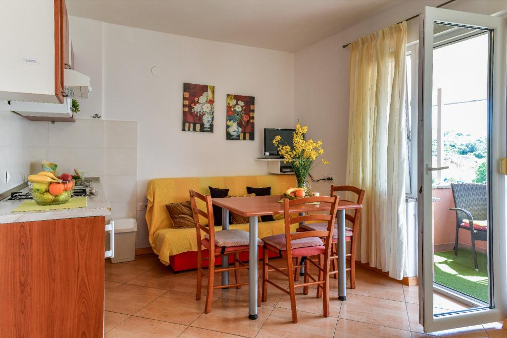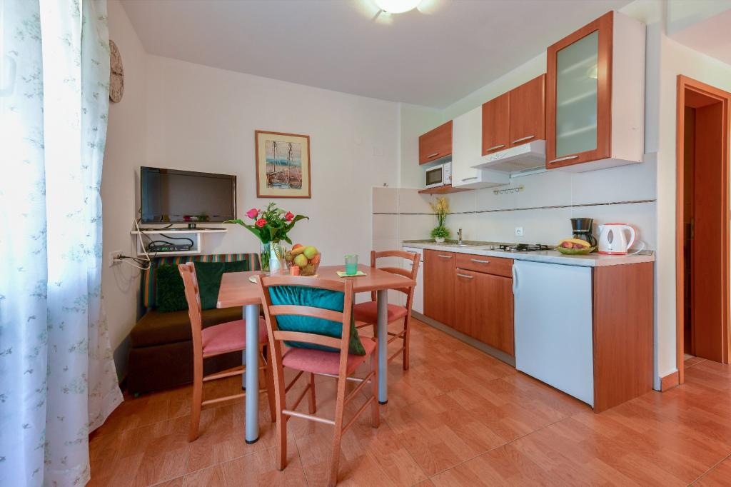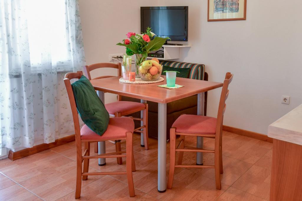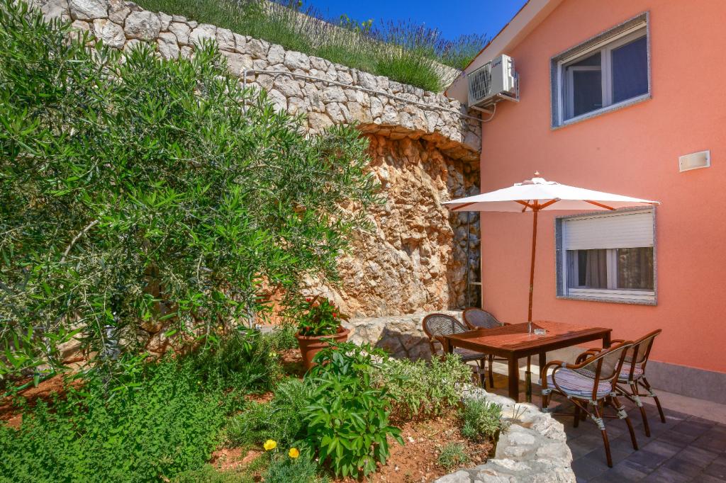 Vechiul Baška este un loc puțin liniștit în partea de sud extremă a insulei Krk. Facilitatea se află la capătul șantierului - la capătul drumului asfaltat. Grădina este frumos decorată cu terase cu grătar, dușuri și zone mici verzi - grădini. Distanța de la plaja cu nisip - pietriș este de 100 de metri. Dana în portul mic este la 100 de metri distanță de proprietate. Centrul se află la o plimbare de 10 minute. În apropiere sunt 4 restaurante. Distanta de la primul restaurant este la 50 de metri distanță. Facilitatea este nouă și apartamentele sunt echipate modern. Curtea are 8 locuri de parcare. (3 locuri de parcare sub acoperiș, altele nu sunt acoperite)