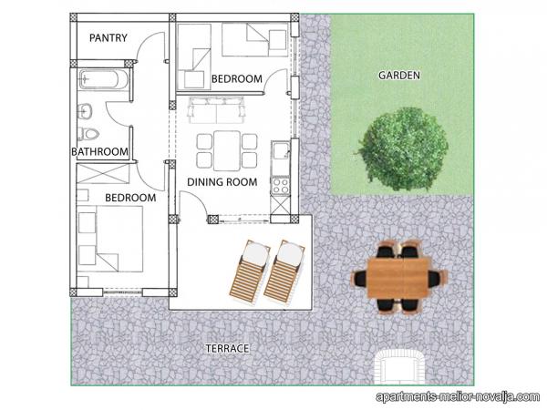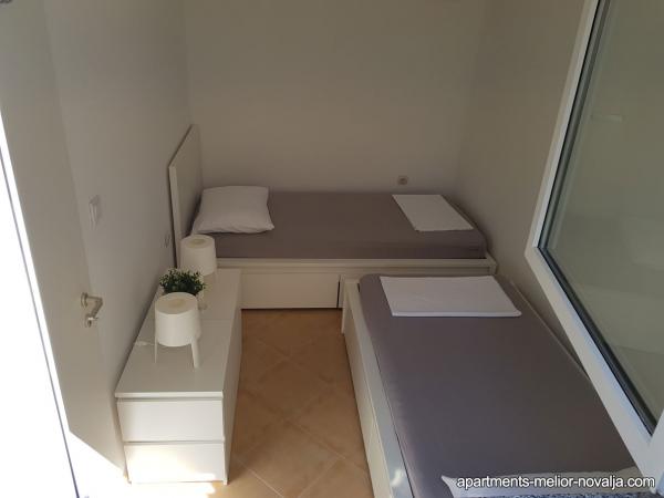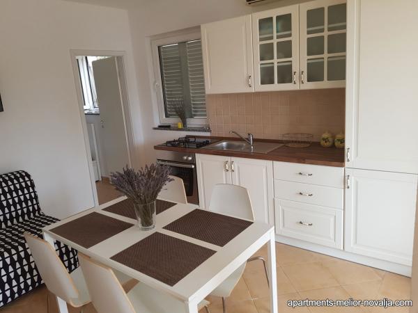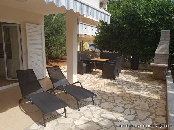 Apartament Melior este foarte spațios, frumos decorat, situat la parterul casei, are o intrare separată, o terasă spațioasă cu grătar și o zonă de ședere și de plajă pe șezlonguri. Echipat cu tot ce aveți nevoie și totul este aproape de apartamente. Locație excelentă, la doar 70m de plaja de nisip frumoasă \ Uljak \, 30m de la barul de plajă local, 600m de magazine locale și 700m de la restaurantul frumos de-a lungul \ Tavern Porat \. Aproape de apartament există o frumoasă promenadă de-a lungul coastei de-a lungul întregului Stare Novalja. Apartamentul este destinat în primul rând pentru o vacanță liniștită de familie (familie cu copii), și nu pentru cei care au venit să joace pe plaja populară Zrće.