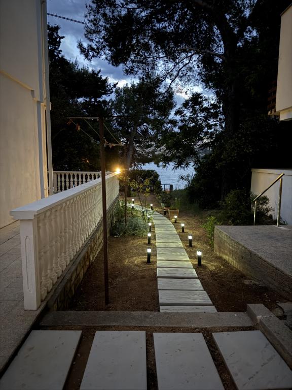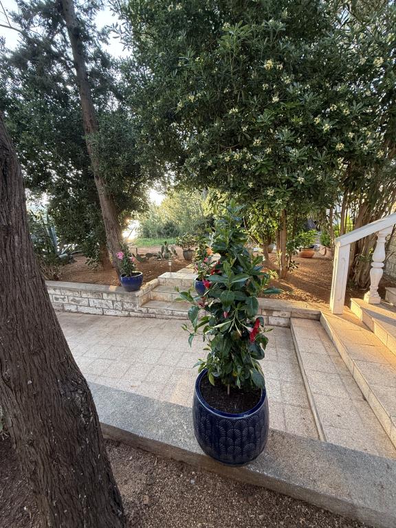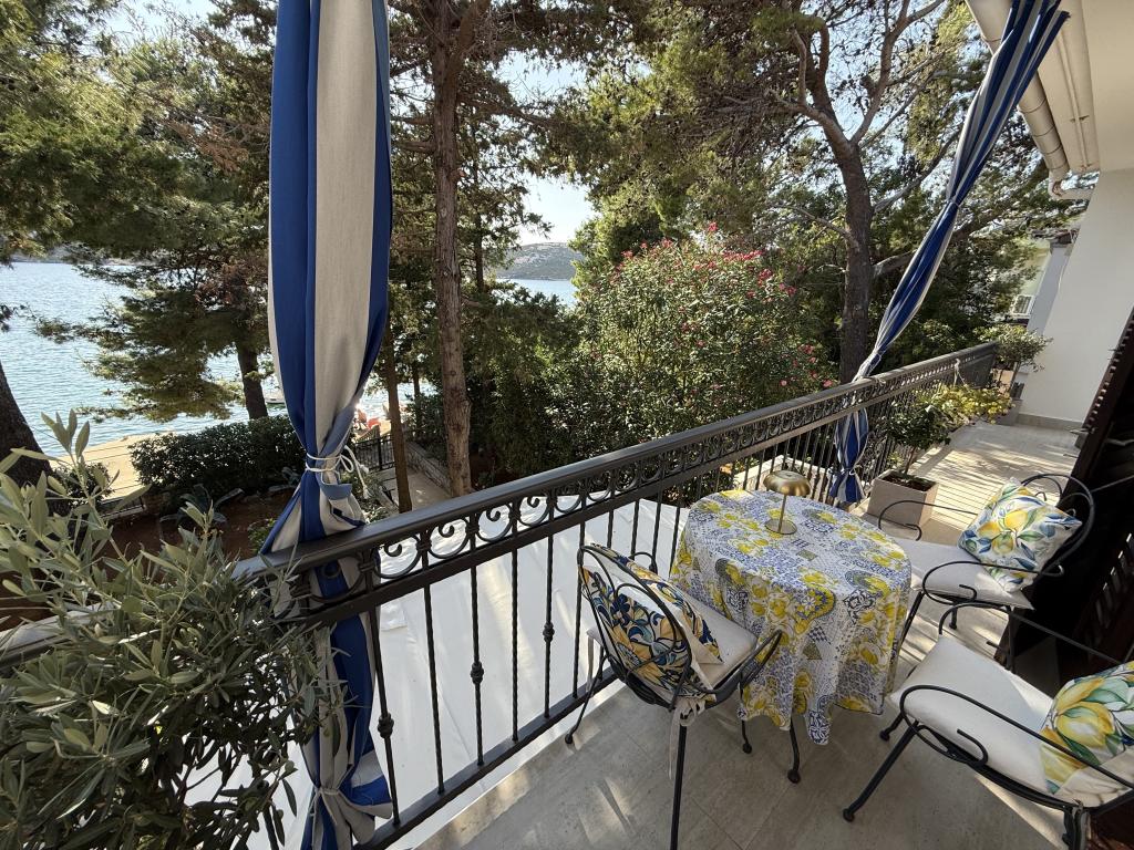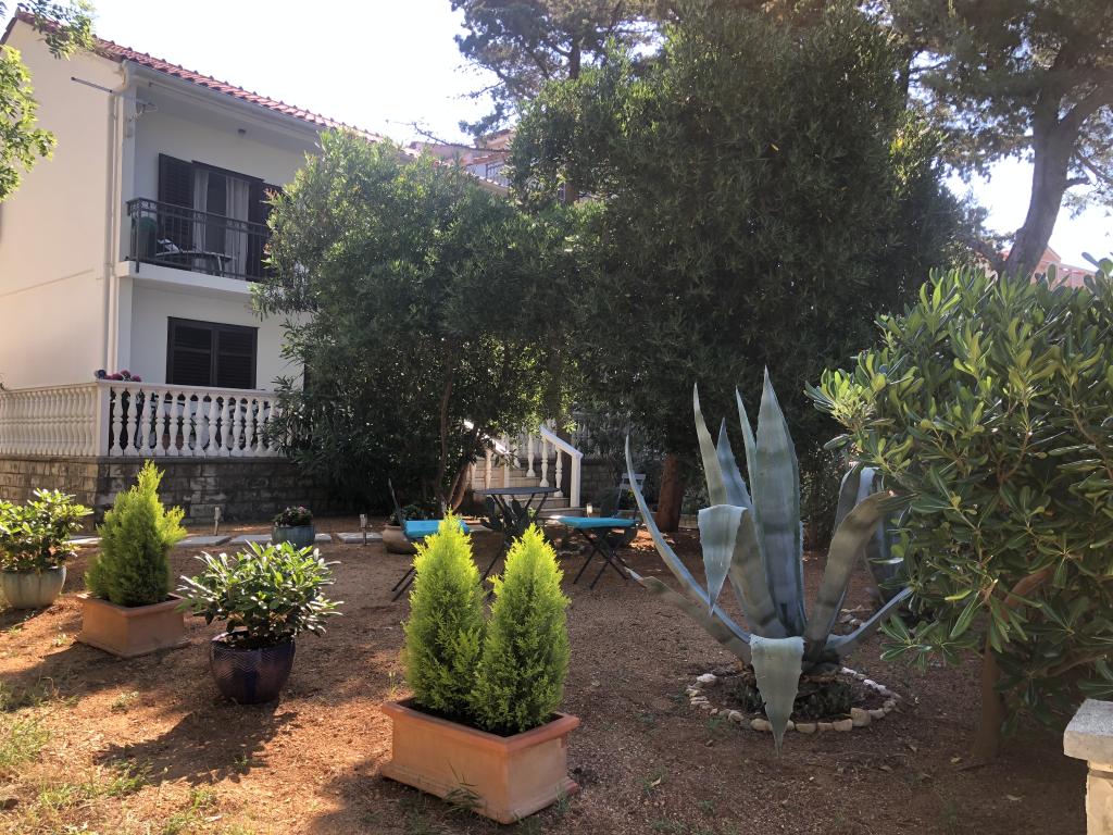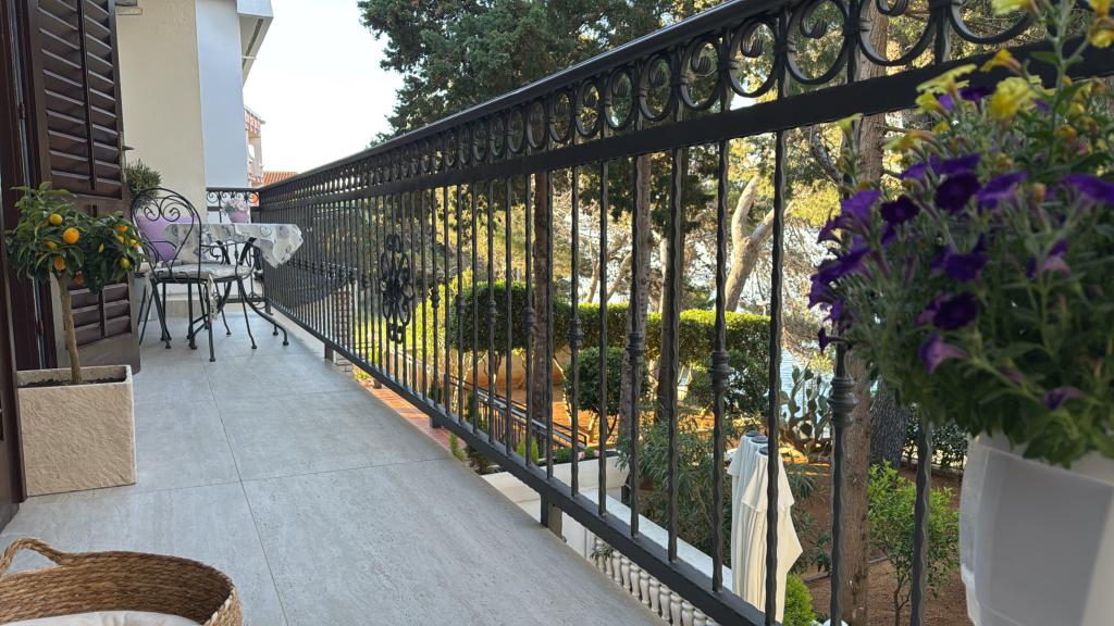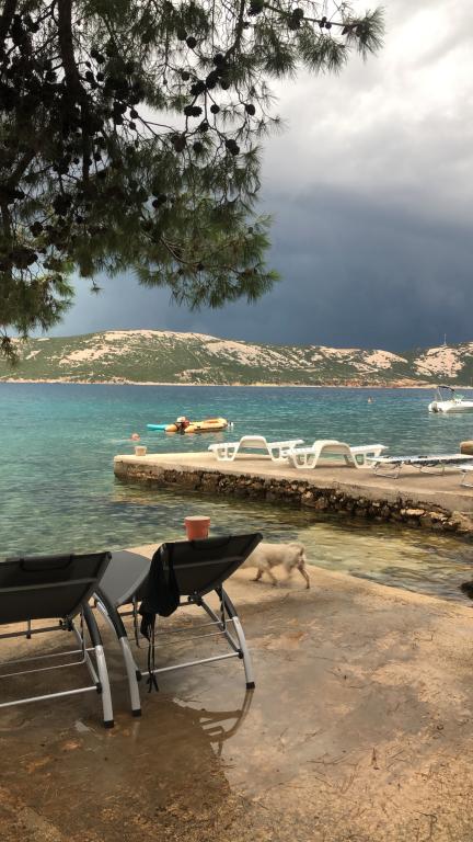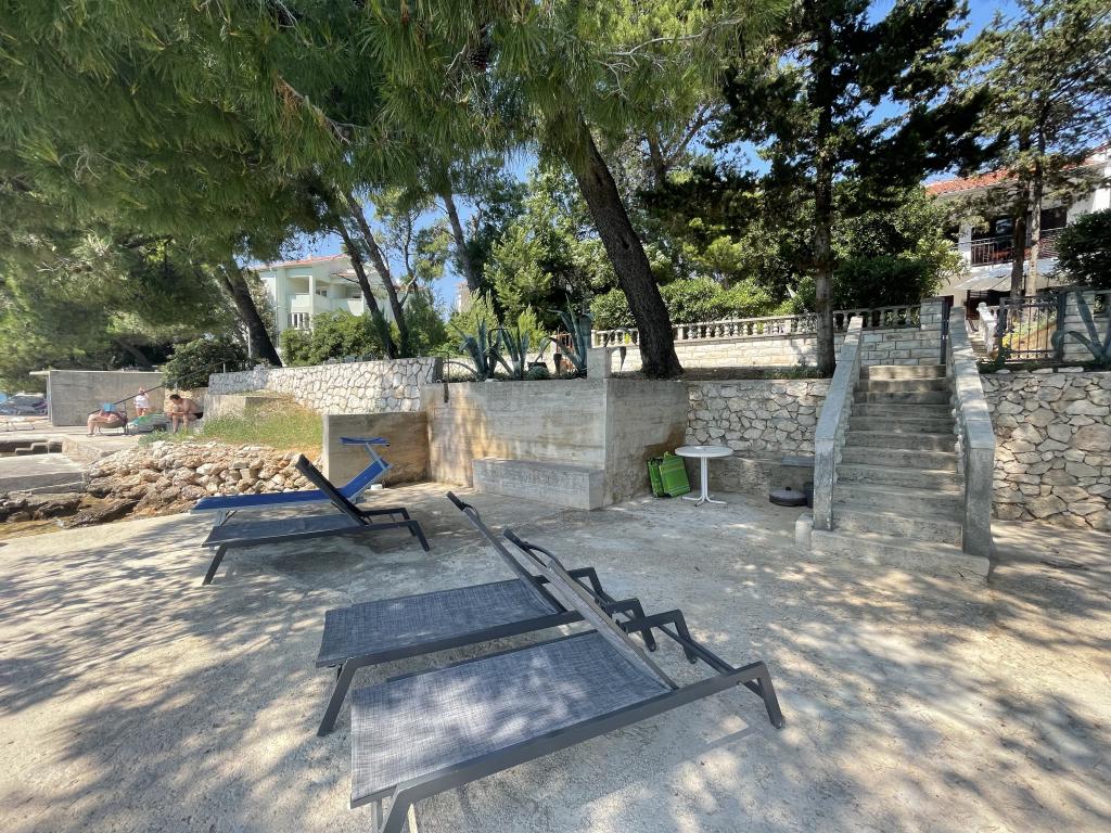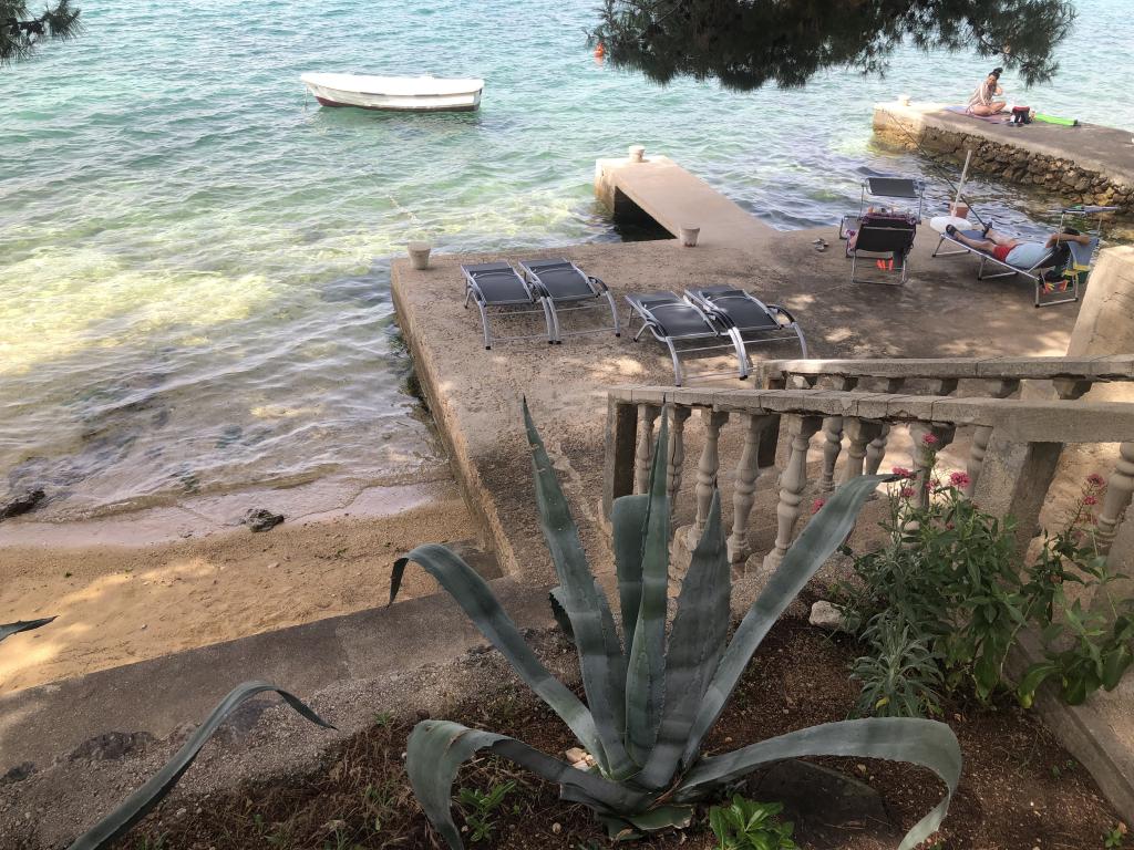 Toate cele 4 apartamente folosesc o plajă privată în fața casei, cu șezlonguri, duș și umbră de pin. 1. Apartamentul A4+2 este situat la parterul unei case romantice, pe primul rând la mare (10 m). Are două dormitoare și o canapea extensibilă în living. Apartamentul are acces la o terasă proprie mare, cu o vedere frumoasă la mare. Ideal pentru o familie cu copii, dar și pentru un grup de până la 5 prieteni. Este posibil să închiriați apartamentul A4+1 la primul etaj din aceeași casă și să utilizați întreaga casă. 2. Apartamentul A4+1 este situat la primul etaj și are 2 dormitoare și un pat suplimentar în living. Are un balcon cu o vedere fabuloasă și o terasă privată de 20m2. 3. Studioul este situat într-o altă casă mai mică, în grădină, în spatele primei case, la 30 de metri de mare. 4. Apartamentul A2+2 este situat într-o altă casă mai mică, în grădină, în spatele primei case, la 30 de metri de mare. Liniștea și intimitatea, mai ales în iunie și septembrie, sunt avantajele acestor apartamente, despre care mulți au spus că sunt ca raiul pe pământ. Animalele de companie nu sunt permise (câini de talie mică, până la 7 kg, la cerere).