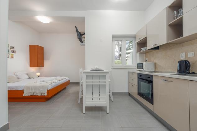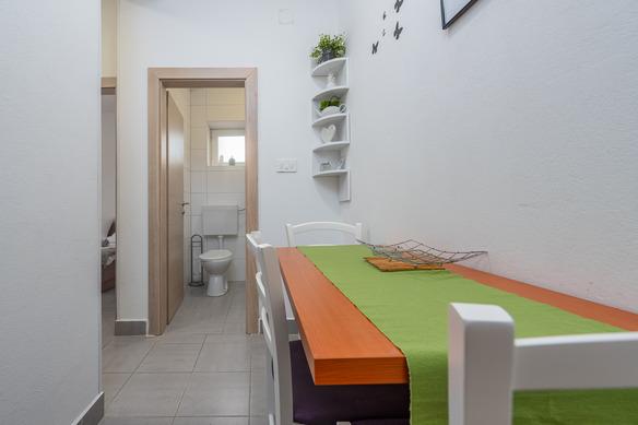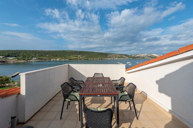 Toni Apartamentele sunt situate în Stara Novalja de pe insula Pag. Facilitatea este situat lângă plajă și are un restaurant la parter. De asemenea, este aproape, la 5 minute de mers pe jos și o plajă publică mare, cu toate sporturi de apă și bar. În fața casei se află o parcare mare și grădină cu grătar și oferă posibilitatea de a inchiria biciclete. Novalja este un loc mic, dar dacă sunteți în căutarea pentru a te distra la doar 5 km este faimoasa Zrce plajă cu cluburi de noapte mari, și 2.5 km Novalja.