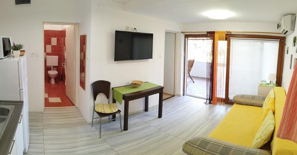 Tocmai ne-am întors din vacanță și vreau să împărtășesc cu voi impresiile mele pozitiv. Acesta este echipat cu mai mult de multe alte apartamente în care am bila.Pored aer conditionat, internet, TV, cuptor, vesela, lenjerie de pat, prosoape, paturi confortabile, suite a un prăjitor de pâine, fier, fen..Sve la kuce..Potpuno este nou și extrem de curat, cu o terasă frumoasă. Plaja este 100m și este potrivit pentru familiile cu copii și tânăra generație, pentru că este o parte pietricele. Gazdele sunt de ajutor foarte prietenos. La sosirea la apartament ne așteaptă la cină în frigider, vin și fructe pe masa. Bac este aproape și puteți veni și umblă. În ceea ce pentru mine personal, voi fi fericit și acolo vara viitoare. Noi recomandăm acest apartament, nu am nici o obiecție!