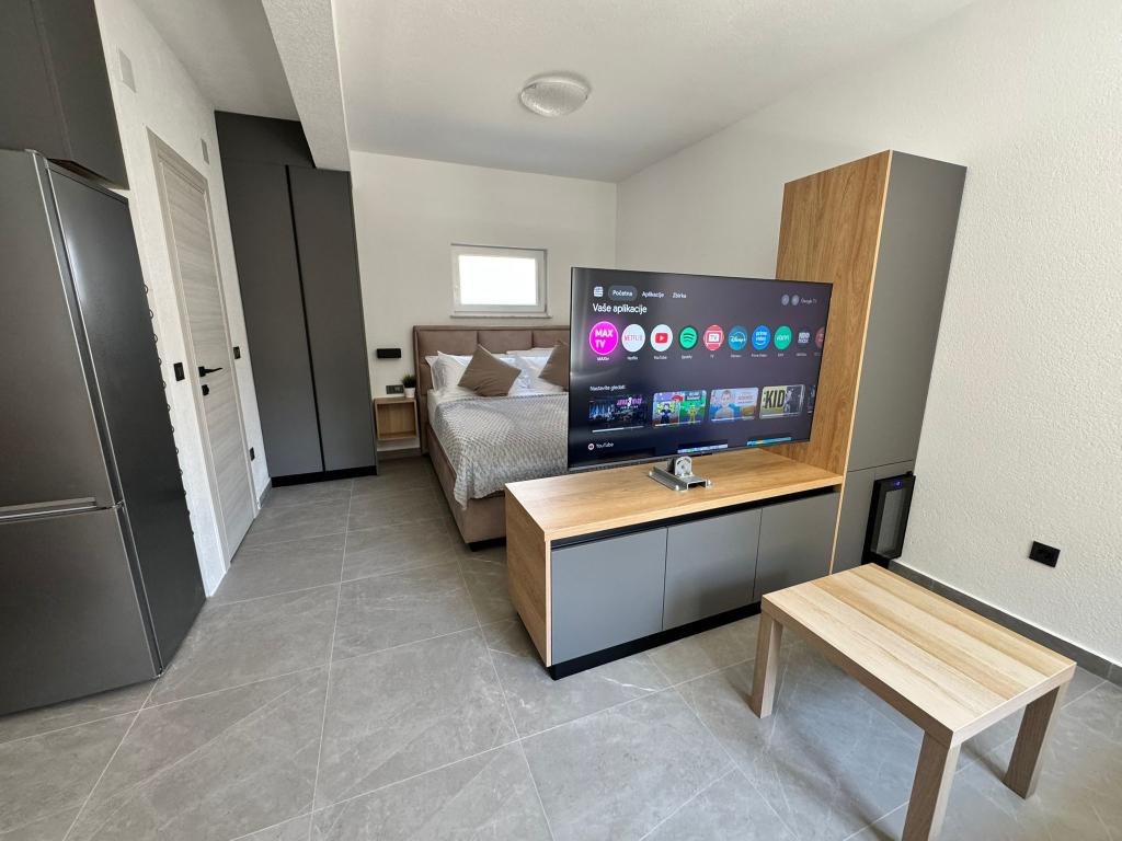 Studioul recent mobilat și complet renovat este situat într-o clădire separată, într-o zonă liniștită din Starigrad, la doar 1 km de intrarea în Parcul Național Paklenica și la 500 m de mare, ceea ce îl face o alegere ideală pentru iubitorii de mare și natură. Apartamentul este conceput pentru 3 persoane și este dotat cu tot ce aveți nevoie pentru o vacanță plăcută și relaxantă: aer condiționat, Wi-Fi, Google TV (Netflix și MaxTV), o bucătărie complet utilată (mașină de spălat vase, cuptor cu microunde, grătar, aparat de cafea...), o baie modernă (mașină de spălat) și un pat de calitate. Oaspeții au acces și la o terasă plăcută cu foișor și grătar în curte. În apropierea apartamentului se află Tommy, restaurante, o farmacie, o benzinărie, iar marea este accesibilă pe jos în 5 minute sau cu mașina (1 minut). Parcarea este asigurată lângă clădire, iar gazdele sunt întotdeauna disponibile să vă ajute.