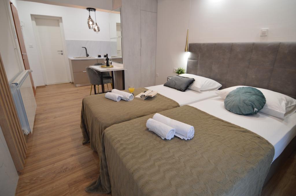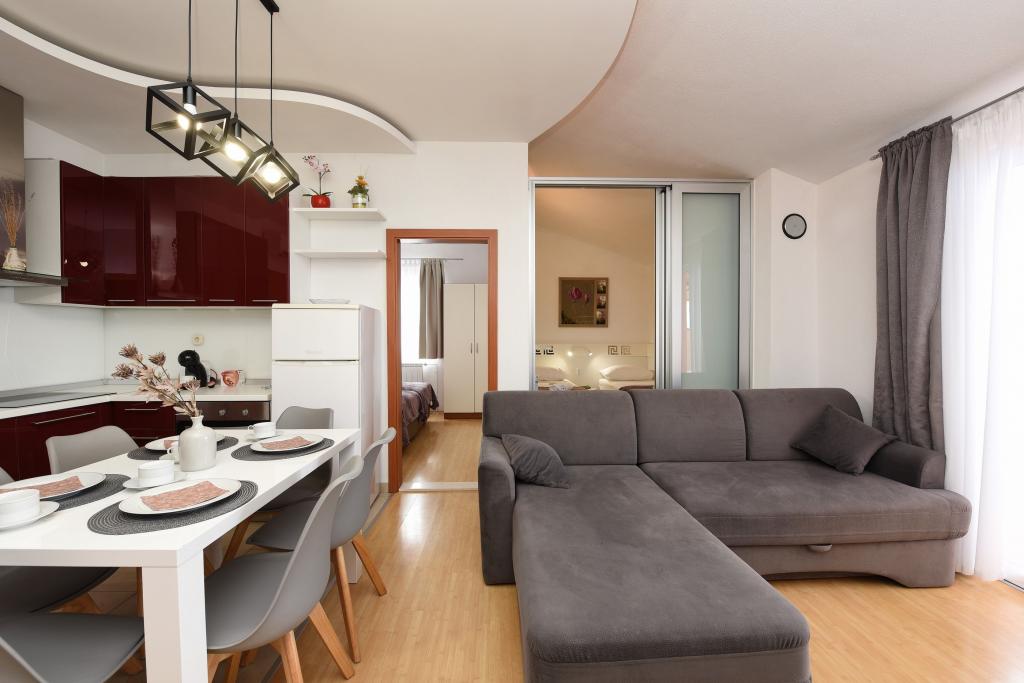 Apartamente în Starigrad Paklenica, la 190 m de mare, la 2 km de Parcul Național Paklenica. Avem mai multe apartamente: garsoniera pentru 2 persoane, apartament pentru 2 persoane si 1 dormitor, apartament pentru 4 persoane cu doua dormitoare. Apartamentele sunt complet utilate, aer conditionat, Wifi, filtru de cafea, cuptor cu microunde, ceainic, TV/2Sat, seif, masina de spalat vase, prosoape de persoana, uscator de par, aer conditionat, incalzire centrala,... Va puteti petrece vacanta cu inot si plajă pe plajă sau vacanță activă, plimbare prin Velebit, alpinism în Parcul Național Paklenica, ciclism, caiac, rafting pe Zrmanja, plimbare cu barca...
