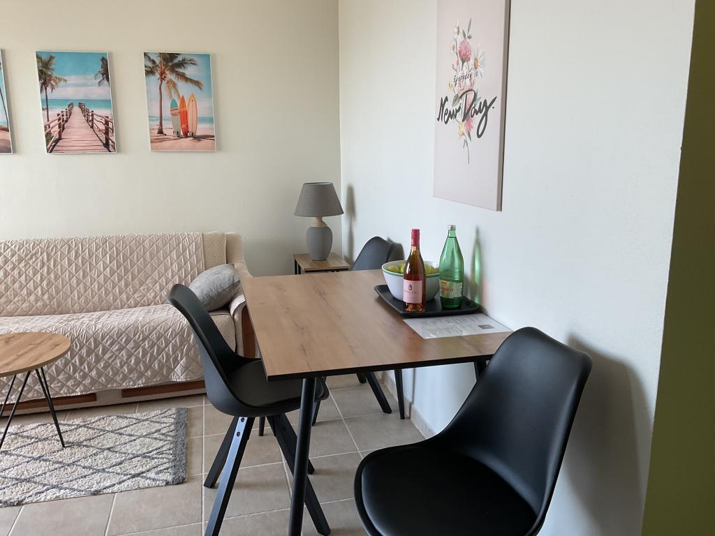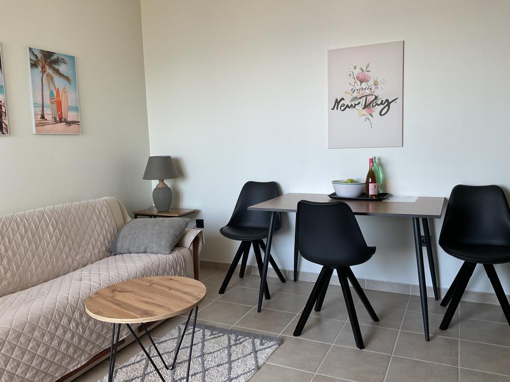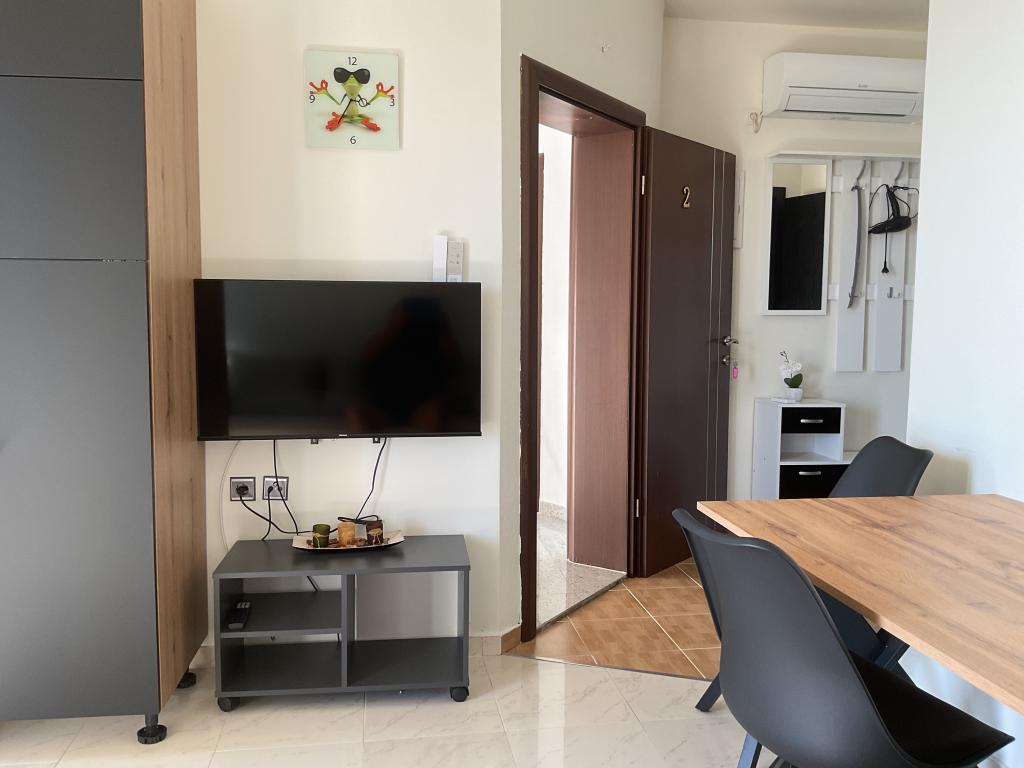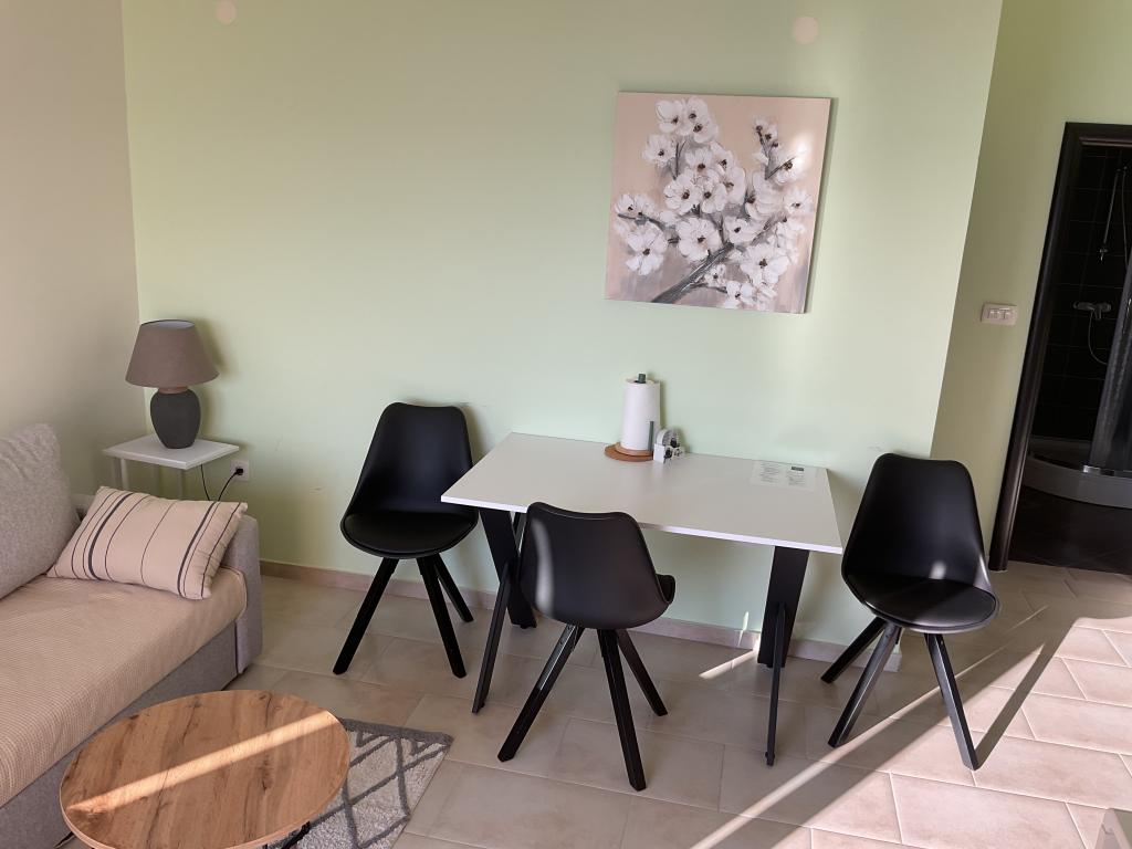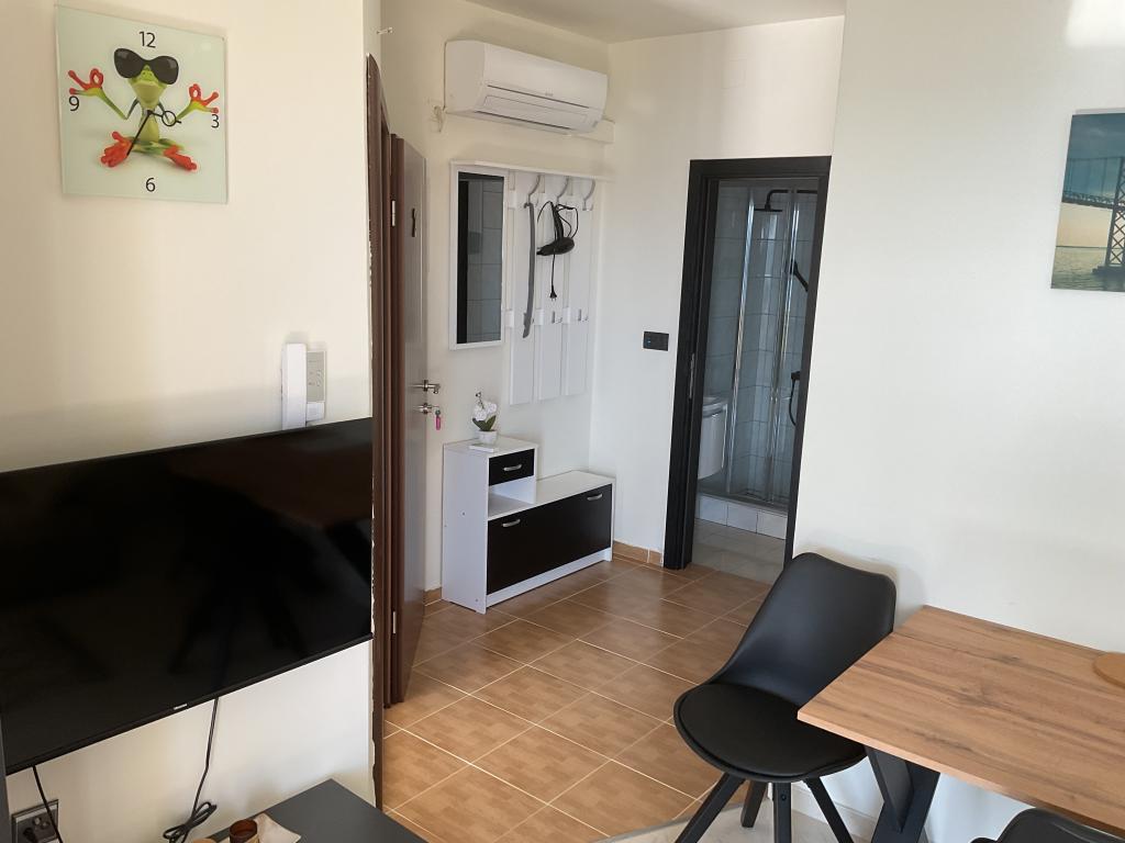 Apartament frumos și curat, cu piscină în aer liber. Apartamentul are o terasă, o bucătărie bine utilată, un living cu o canapea și un televizor și un dormitor cu un pat confortabil și un dulap spațios. Gazdele sunt foarte prietenoase și comunicative. Ne ajută cu sfaturi despre ce merită văzut în oraș, unde sunt restaurantele bune și cele mai bune plaje. Preț accesibil pentru serviciile pe care le oferă.