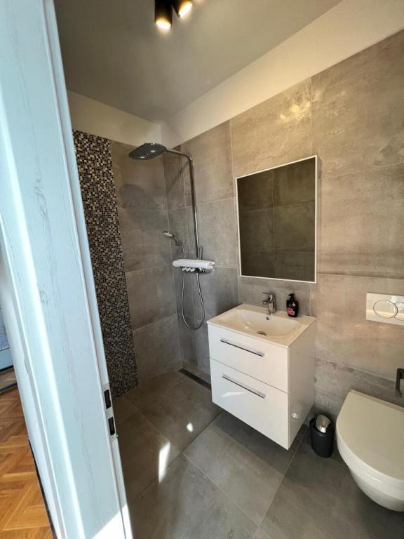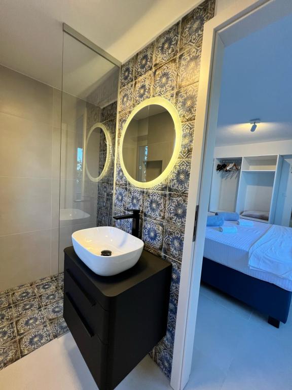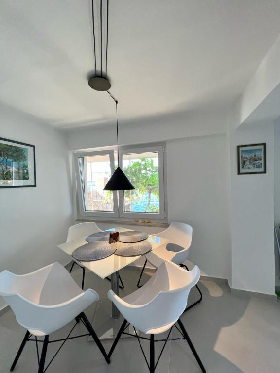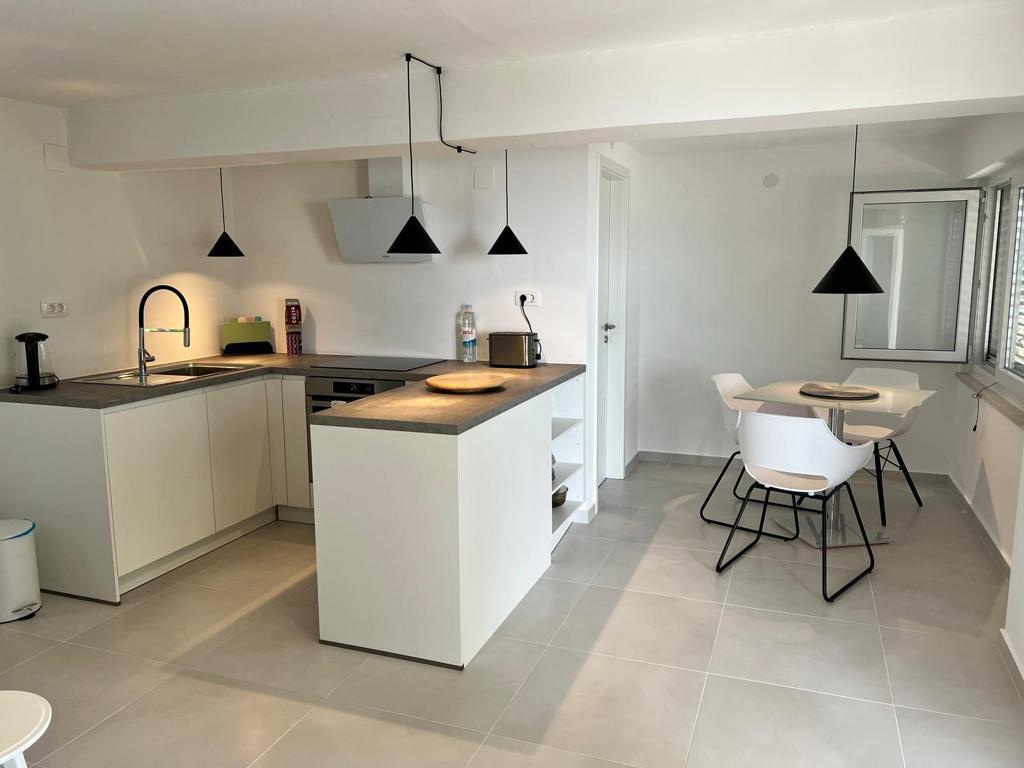 2 apartamente de lux (1 pentru 4 persoane și unul pentru 5 persoane) și 1 studio pentru 2 persoane sunt de închiriat, în primul rând la mare, la 4 km de Starigrad-Paklenica. Bucurați-vă de o vacanță de neuitat în apartamentele noastre exclusiviste situate chiar pe coastă, cu acces direct la marea cristalină. Această unitate de cazare oferă tot ce aveți nevoie pentru o vacanță perfectă: Dormitor spațios: Decorat elegant, cu un pat confortabil și detalii moderne, cu o baie privată dotată cu facilități de top. Bucătărie complet utilată**: Bucătărie modernă cu cele mai noi electrocasnice, ideală pentru prepararea unor mese delicioase. Terasă privată pentru fiecare apartament: O oază de liniște cu o vedere frumoasă la mare, perfectă pentru relaxare cu cafeaua de dimineață sau cu apusul de soare de seară. Duș exterior: Bucurați-vă de un duș răcoritor sub stele, înconjurați de natură. Cadru natural: Apartamentul este situat în primul rând la mare, cu acces direct la plajă, într-un cadru idilic, înconjurat de verdeață mediteraneană luxuriantă și de parfumul mării.