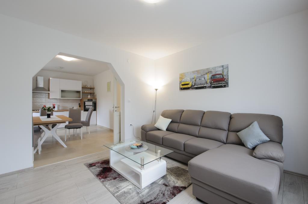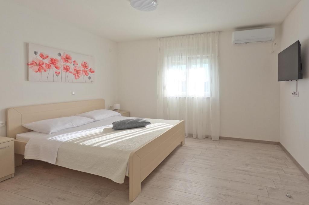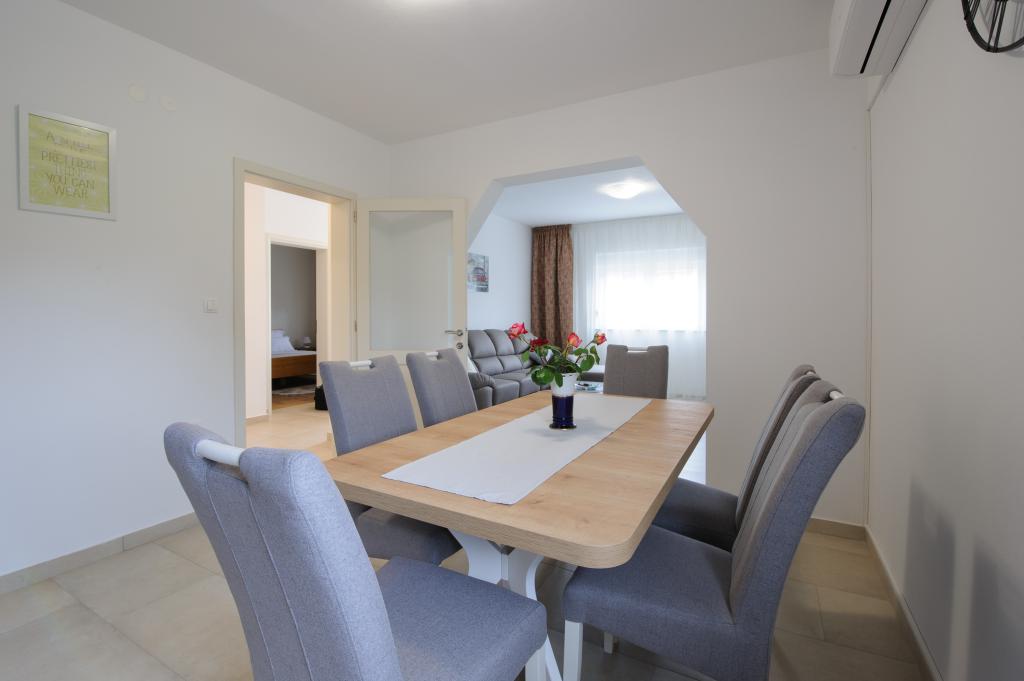 APARTAMENTELE NOI IVE SUNT IDEALE PENTRU VACANȚA DUMNEAVOASTRĂ Apartamentele Ive sunt situate în Sukošan, la doar 300 de metri de plaja Mala Makarska și la doar 10 kilometri de frumosul Zadar. Apartamentul de la parter are 2 dormitoare, un living spațios și o bucătărie, precum și un balcon mare. Apartamentul ocupă de fapt un etaj întreg al casei. Apartamentul de la etaj are, de asemenea, două dormitoare, un living, o bucătărie, două băi și o terasă. Apartamentul este dotat cu o bucătărie funcțională (frigider, aragaz, mașină de spălat vase doar la parter, vase...), televizor, aer condiționat, mașină de spălat rufe, paturi duble mari. Putem adăuga și un pătuț la cerere. Terenul de 900 m2 are 3 locuri de parcare și un loc de garaj, un grătar în aer liber, verdeață pentru copii... Pe o rază de 300 de metri există magazine, restaurante, baruri pe plajă, locuri de joacă pentru copii, fast-food...