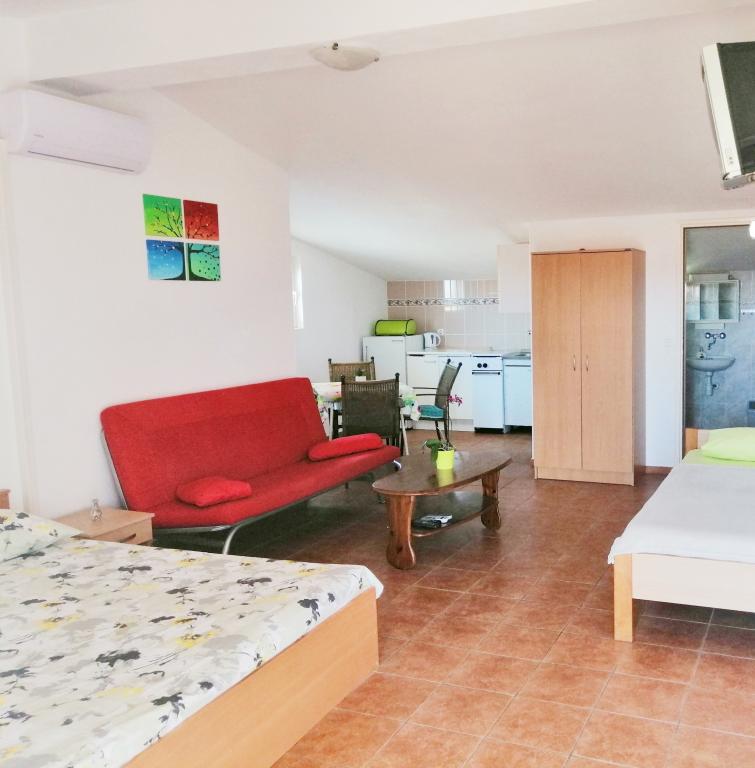 Ne aflăm în Sukošan, la 8 km de orașul Zadar. Apartamentele sunt situate între drumul principal și mare, într-o zonă liniștită a orașului. La primul etaj avem apartamente cu un dormitor, iar la al doilea etaj sunt garsoniere cu terase și vedere deschisă la mare. Apartamentele sunt situate la 10 minute de mers pe jos de plaja principală „Dječji raj”, la 5-7 minute de mers pe jos de plaja laterală „Soline” și la 5 minute de centrul orașului. Prețul include taxa de turist, aer condiționat și Wi-Fi. Vă dorim o vacanță plăcută!