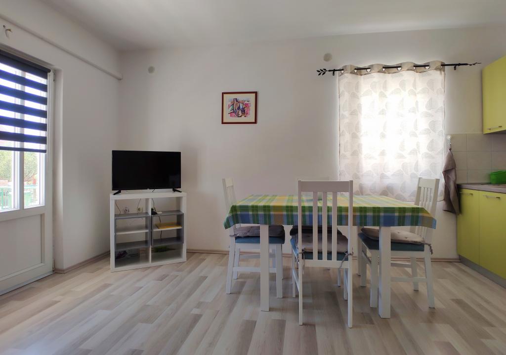 Apartamentele sunt la 3 minute de mers pe jos de mare, centrul orașului și magazine și la 5 minute de plajă. Situat pe o strada linistita in apropierea centrului orasului. Parcarea este asigurata in curte. Două apartamente sunt la parterul clădirii și fiecare are o terasă de 8 m² în față, iar unul este recent renovat la etajul doi, la mansarda clădirii cu un balcon de 6 m².