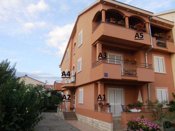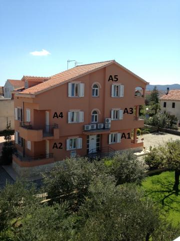 Apartamente complet decorate și echipate într-o zonă liniștită din Sukosan, la 90 m deasupra plajei principale și la 300 m de centru. Casa este formata din 5 apartamente A1 (3 + 1, 45m2); A2 (3 + 1, 45m2); A3 (3 + 1, 45m2); A4 (3 + 1, 45m2) și A5 (4 + 2, 75m2) cu balcoane, parcare privată împrejmuită și grătar în curte destinată utilizatorilor de apartamente. Fiecare apartament dispune de aer conditionat, LED SATTV, frigider cu congelator, internet Wi-Fi gratuit, cuptor cu microunde, ceainic, filtru de cafea, uscator de par etc.,,,,,