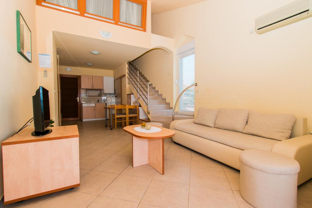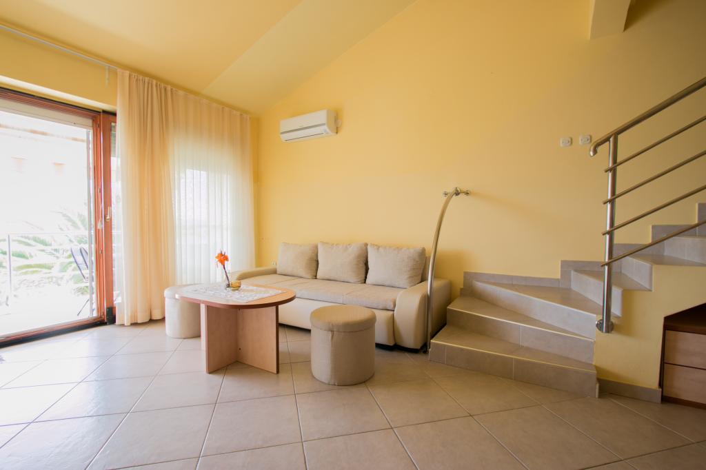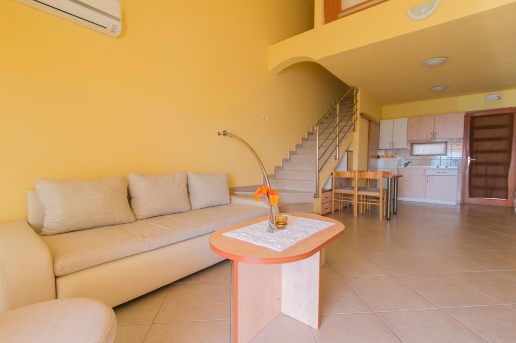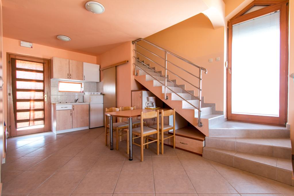 Apartamentele Matas A1 și A3 (pentru 4 persoane) și A2 (pentru 2 persoane) sunt situate la parter. Apartamentele Matas B1, B2, B3, B4, B5 (pentru 4 persoane) sunt situate la primul etaj, de tip duplex. Un living spațios cu bucătărie și zonă de luat masa, precum și uși mari către terasă oferă locul perfect pentru relaxare. În apartamente veți găsi tot ce aveți nevoie pentru vacanța dumneavoastră. Apartamentele sunt complet climatizate și dotate cu TV prin satelit, internet wireless, aragaz, frigider și veselă. Apartamentele sunt formate dintr-un dormitor (2 persoane), living (canapea pentru 2 persoane), bucătărie, baie și o terasă spațioasă cu o vedere frumoasă asupra arhipelagului Zadar. Apartamentul A2 este un studio pentru 2 persoane. Dacă este necesar, avem și un pătuț pentru copii cu vârsta de până la 2 ani.