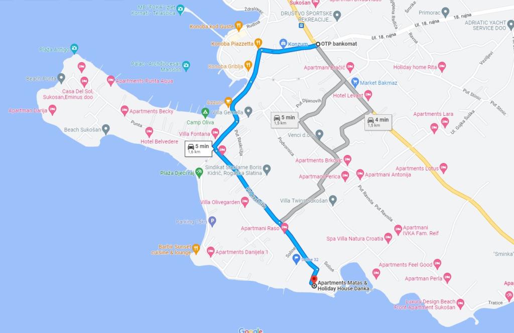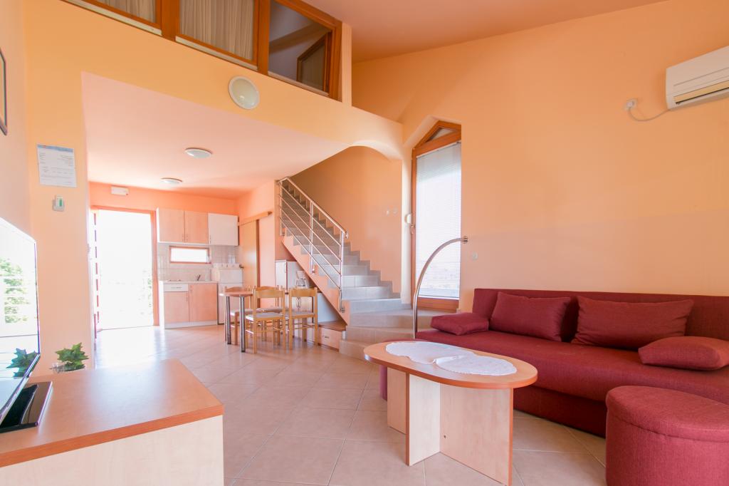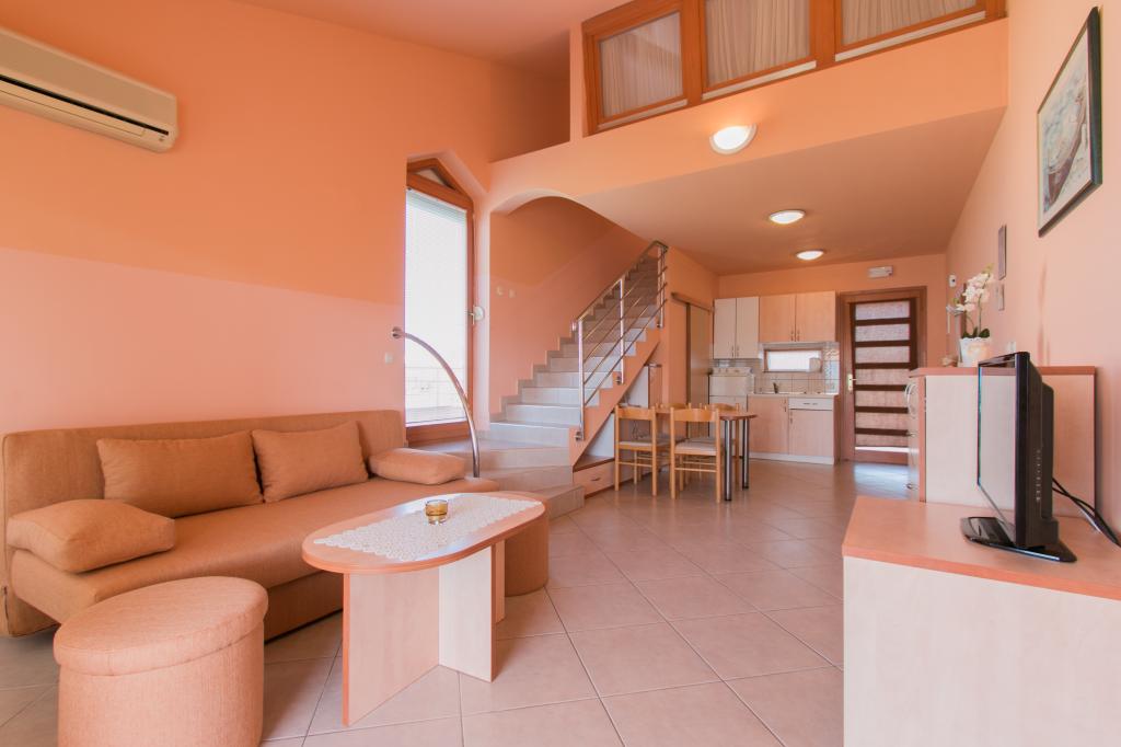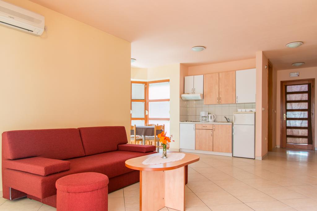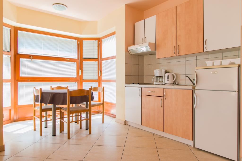 Apartamentele Matas A1 și A3 (pentru 4 persoane) și A2 (pentru 2 persoane) sunt situate la parter. Apartamentele Matas B1, B2, B3, B4, B5 (pentru 4 persoane) sunt situate la primul etaj, de tip duplex. Un living spațios cu bucătărie și zonă de luat masa, precum și uși mari către terasă oferă locul perfect pentru relaxare. În apartamente veți găsi tot ce aveți nevoie pentru vacanța dumneavoastră. Apartamentele sunt complet climatizate și dotate cu TV prin satelit, internet wireless, aragaz, frigider și veselă. Apartamentele sunt formate dintr-un dormitor (2 persoane), living (canapea pentru 2 persoane), bucătărie, baie și o terasă spațioasă cu o vedere frumoasă asupra arhipelagului Zadar. Apartamentul A2 este un studio pentru 2 persoane. Dacă este necesar, avem și un pătuț pentru copii cu vârsta de până la 2 ani.