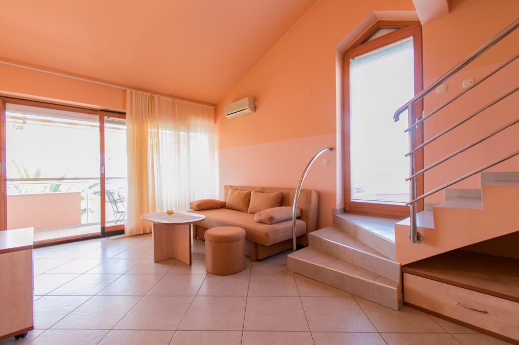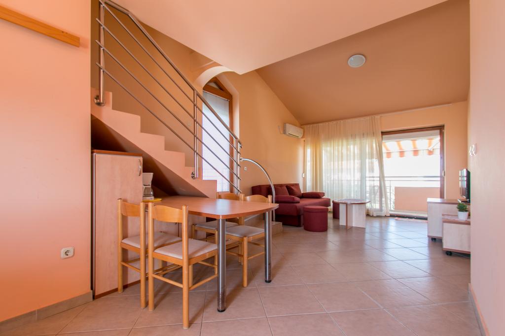 Apartamentele Matas se află la doar câțiva metri de plajă! Plaja privată este liniștită, bine întreținută, cu pietricele. Plaja cu nisip se află la aproximativ 500 de metri distanță. Toate apartamentele au un dormitor (studio-ul are doar living), living, baie, bucătărie, terasă sau balcon și sunt potrivite pentru max. 4 persoane. Toate apartamentele au o suprafață de 64 m2, două camere (dormitor și living/dormitor), cu excepția Ap. A2 (32 m2, maxim 2 persoane - dormitor/living) sunt dotate cu aer condiționat, TV prin satelit, Wi-Fi și aparat de cafea. Există, de asemenea, o spălătorie cu mașină de spălat în casă. În grădina de lângă plajă există un duș de grădină și un grătar. Apartamentele sunt complet utilate cu tacâmuri, farfurii, lenjerie de pat, prosoape, astfel încât să nu fie nevoie să aduceți nimic cu dumneavoastră.