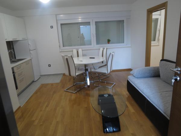 Apartamentele mobilate modern sunt situate într-o zonă liniștită din Sukošan. Distanța de plajă este de 1 minut, iar de centru 10 minute de mers pe jos. (aproximativ 500 de metri) De asemenea, este la 10 minute de mers pe jos de primul magazin. Fiecare apartament este dotat cu aer condiționat. Apartamentele au prosoape, hârtie igienică, fierbător și vase. În fața casei există o parcare mare și o mică peluză. Oaspeții pot folosi grătarul situat în curte.
