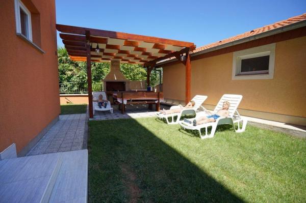 Avem un colțișor pentru cei mai mici, o trambulină, un tobogan, leagăne, barmington... Posibilitatea de a aranja excursii cu barca...