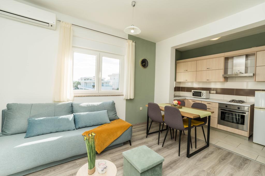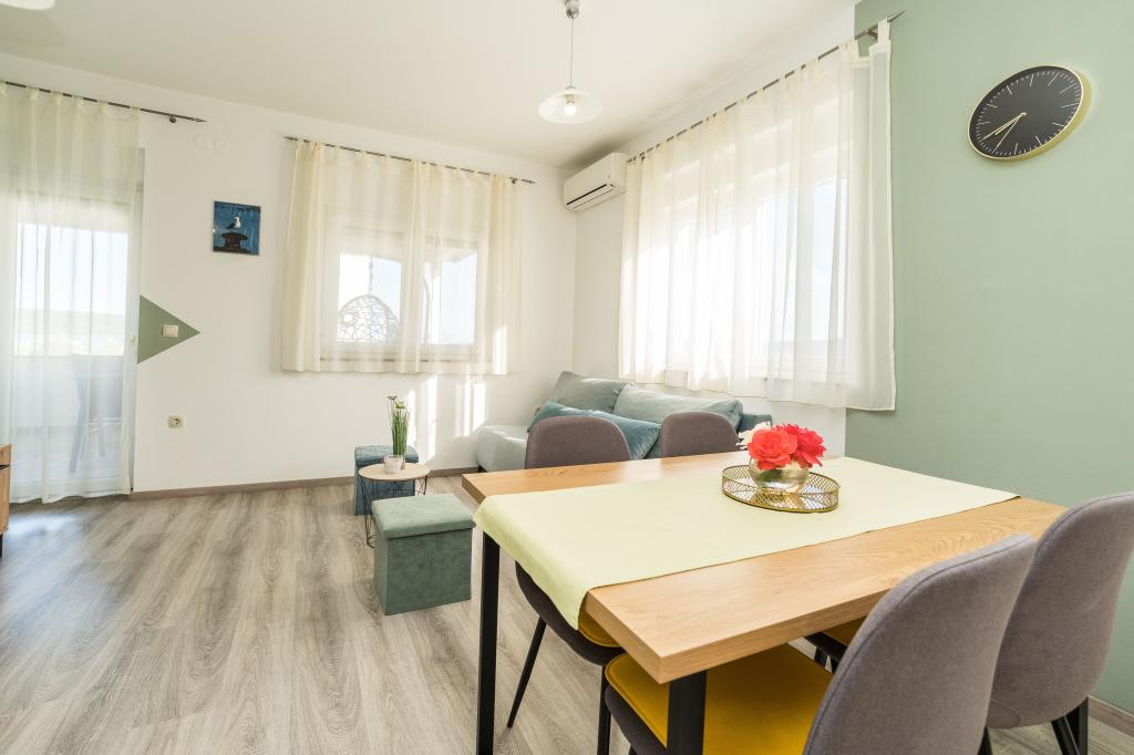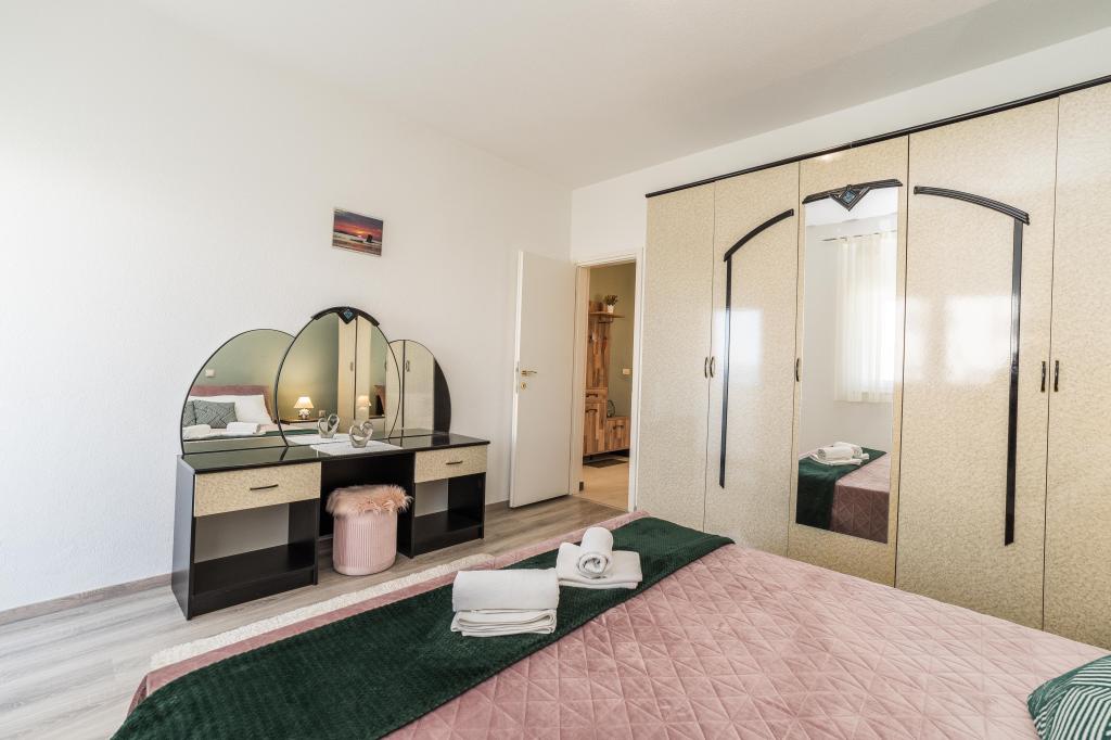 Apartamentele sunt situate într-o casă familială, într-o zonă liniștită din Sukosan, la 60 m de mare, la 15 minute de mers pe jos de centru. Oaspeții au la dispoziție două apartamente confortabile cu două dormitoare, cu vedere la mare și intrare separată. Fiecare apartament este complet si modern dotat cu aer conditionat, SAT/TV si internet Wi-Fi. Fiecare apartament oferă parcare, iar oaspeții pot folosi grătarul. În apropiere se află un loc de joacă deschis cu facilități pentru copii, un teren de baschet și un teren de volei pe plajă. Vă dorim o ședere plăcută la noi.