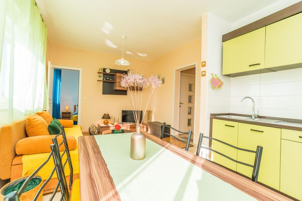 Am petrecut cu tine 10 zile frumoase, Franić, care par prea scurte din perspectiva a câteva zile după întoarcerea noastră. Ambele apartamente (pentru că celălalt a fost închiriat de prietenii noștri cu care am călătorit) ne-au îndeplinit pe deplin așteptările și nevoile. Terasele pe mai multe laturi ale apartamentului sunt o solutie foarte buna atunci cand vrei sa depasesti soarele arzator. De la apartamentele foarte aproape de plaje la 50-100 m (in functie de locul ales pe plaja), puteti chiar sa vedeti copiii care se joaca pe plaja de pe terasa. Vederile spre mare, insule și Velebit variază din partea opusă. Aproape de piata, brutarie, stand de fructe si legume, restaurant - aproximativ 200 m, si sunt situate una langa alta. Cartierul si plaja sunt linistite si linistite. Relaxare deplină garantată. În apropierea traseelor de fond și de biciclete. Eu personal am ales traseul Trip Stanza de 5,2 km lungime. Pentru cei care nu sunt mulțumiți de înot, snorkeling, jogging și plajă, recomandăm excursii și vizitarea obiectivelor turistice nu numai în Sukosan, ci și în alte locuri. Locația din Sukosan ne-a permis să vizităm Zadar și Šibenik. Am fost si in Parcul National Krka (cascade), la punctul de belvedere Kamenjak, de unde se vede Lacul Vrana si Marea Adriatica. Am vizitat chiar și Peșterile Cerovackie, deschise în urmă cu o lună, și frumoasa vale a râului Zrmanja, unde au fost înregistrate filme despre Winnetou. Desigur, suntem conștienți că au existat mult mai multe opțiuni de vizitare a obiectivelor turistice, dar nu a fost suficient timp. Cât despre gazde, au fost foarte politicoase și ospitaliere. Sunt gata să ajute și să sprijine cu sfaturi, înțelese din punct de vedere lingvistic în timpul conversațiilor. Dorim să mulțumim doamnei Matylda pentru clătitele cu dovlecei, un fel de mâncare tradițional Peka monstruos de mare, dar extrem de gustos (aici am observat și marele angajament al Gazdei) și suvenii de rămas bun. Am promis că ne vom întoarce așa că... dacă am fi tolerabili din punctul de vedere al Gazdelor noastre și dacă am putea, ne-am întoarce în acest loc frumos.