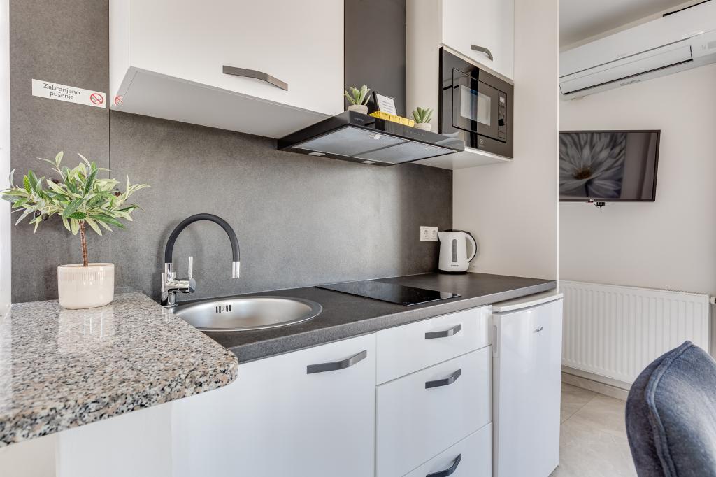Apartamente complet echipate modern, într-o zonă liniștită din Sukošan. Situată la 100 de metri de mare și de o plajă de piatră. Proprietatea este situată la 400 de metri de plaja cu nisip Djećji raj și la 500 de metri de centrul orașului și alte facilități. Oaspeții se pot relaxa și se pot bucura de această unitate de cazare confortabilă și de vedere la mare. Există un grătar comun în curte