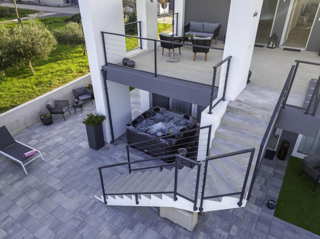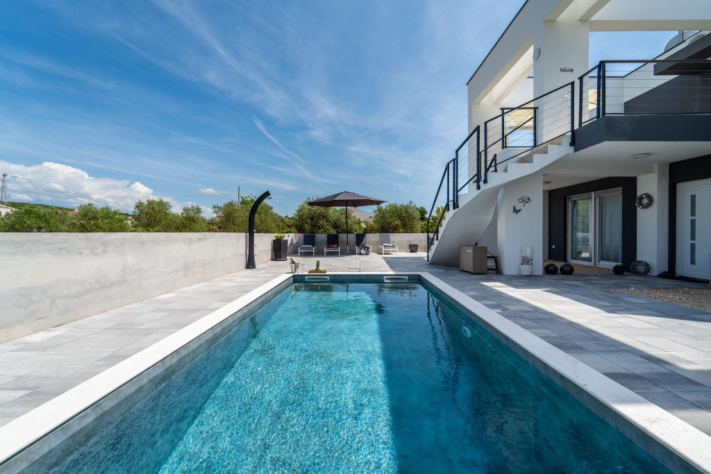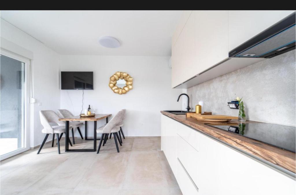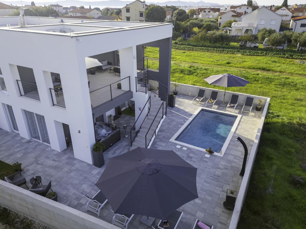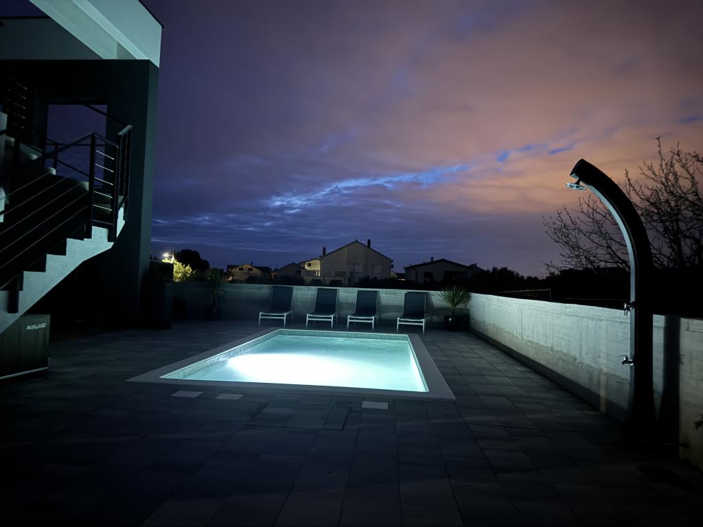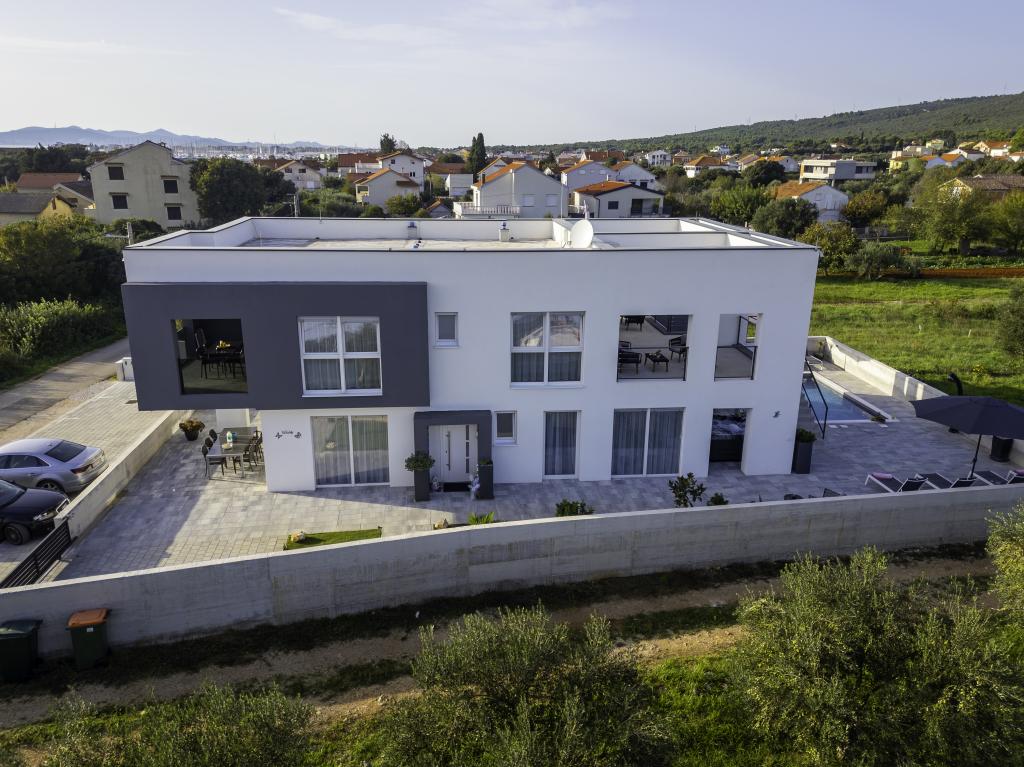 Această frumoasă casă de închiriat este situată în împrejurimile liniștite și pitorești ale orașului Sukošan, ideală pentru familii și cupluri care caută o vacanță. Apartamentul oferă camere spațioase și luminoase, un living decorat modern, o bucătărie complet utilată, un balcon confortabil și o terasă mare cu vedere la natură, în plus, oferim o piscină încălzită pentru oaspeții noștri care vin în sezonul I. Pentru sezonul 2026. Dorim să le oferim dragilor noștri oaspeți și mai multă relaxare - de aceea suntem bucuroși să anunțăm că oferim acum o cadă cu masaj (jacuzzi)! În apropiere se află plaje, restaurante și magazine, ceea ce face ca această locație să fie perfectă pentru explorarea atracțiilor locale. Sunt oferite toate facilitățile necesare pentru un sejur plăcut, inclusiv Wi-Fi, aer condiționat și parcare. Veniți și bucurați-vă de o vacanță de neuitat!