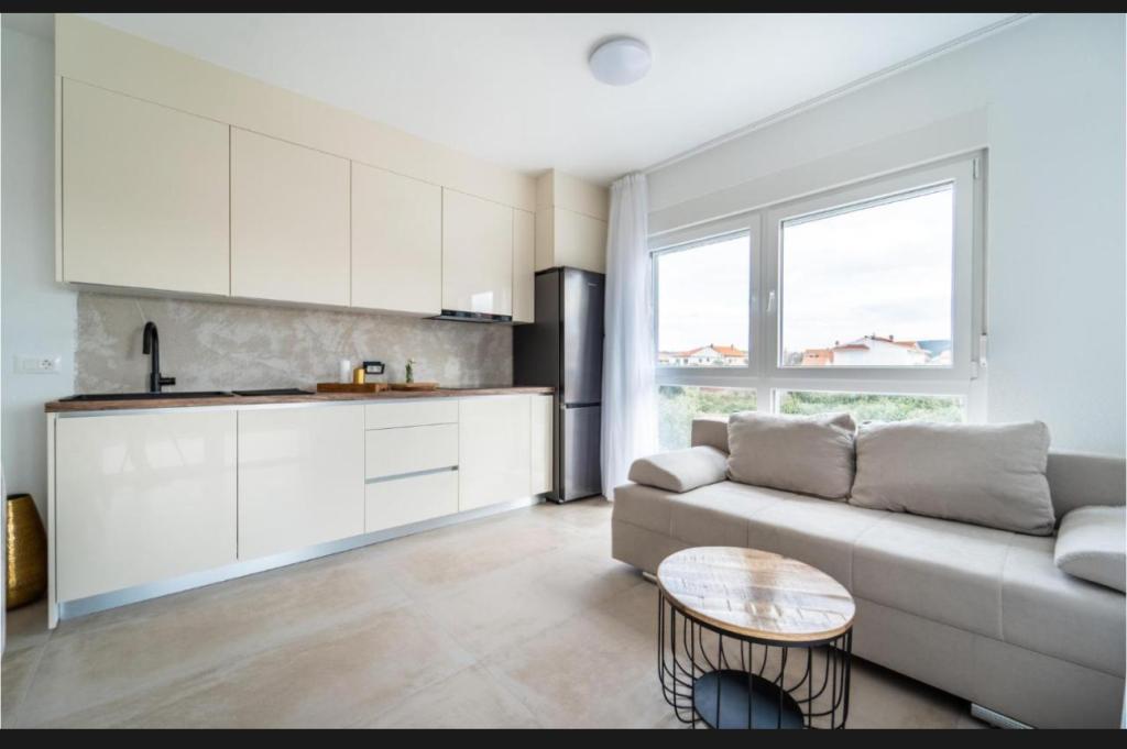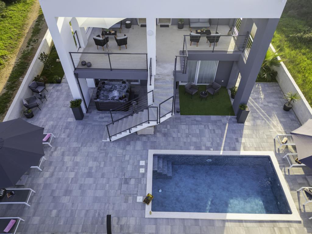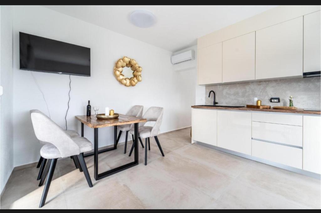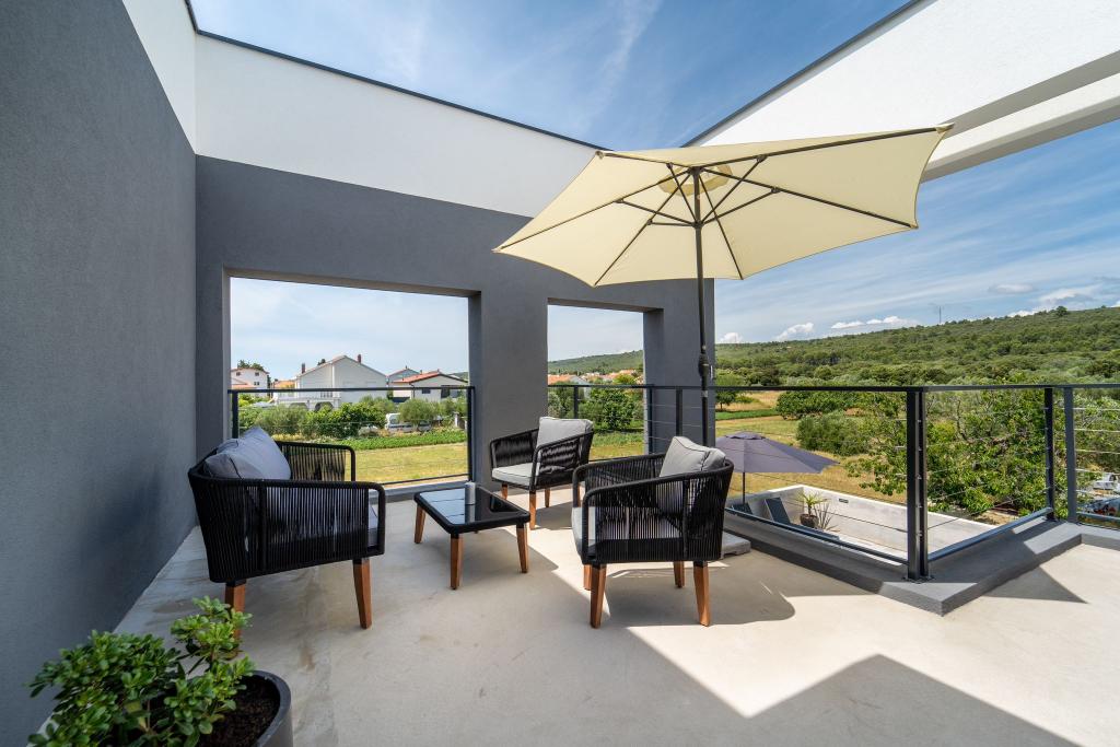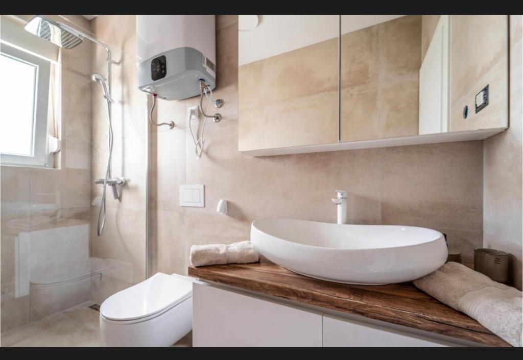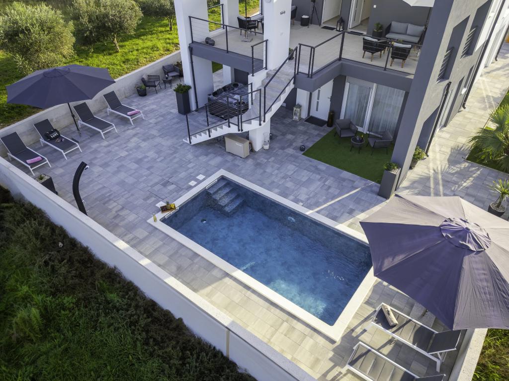 Această frumoasă casă de închiriat este situată în împrejurimile liniștite și pitorești ale orașului Sukošan, ideală pentru familii și cupluri care caută o vacanță. Apartamentul oferă camere spațioase și luminoase, un living decorat modern, o bucătărie complet utilată, un balcon confortabil și o terasă mare cu vedere la natură, în plus, oferim o piscină încălzită pentru oaspeții noștri care vin în sezonul I. Pentru sezonul 2026. Dorim să le oferim dragilor noștri oaspeți și mai multă relaxare - de aceea suntem bucuroși să anunțăm că oferim acum o cadă cu masaj (jacuzzi)! În apropiere se află plaje, restaurante și magazine, ceea ce face ca această locație să fie perfectă pentru explorarea atracțiilor locale. Sunt oferite toate facilitățile necesare pentru un sejur plăcut, inclusiv Wi-Fi, aer condiționat și parcare. Veniți și bucurați-vă de o vacanță de neuitat!