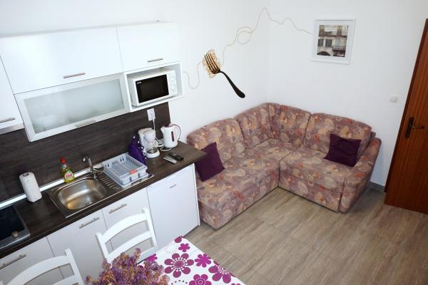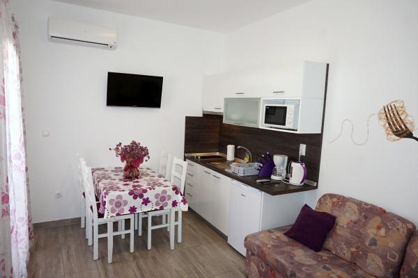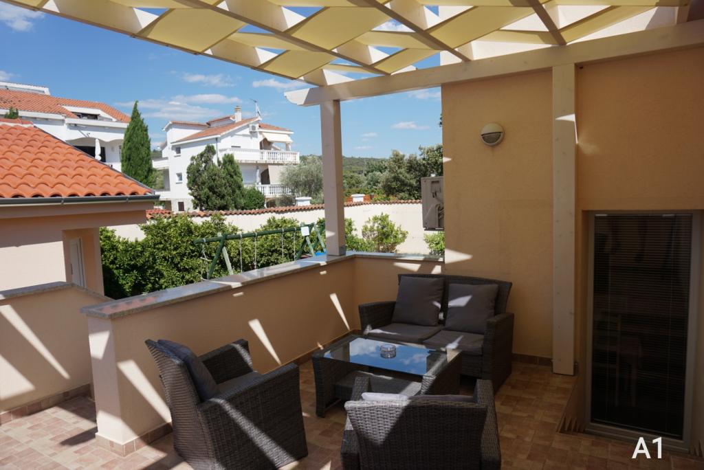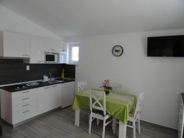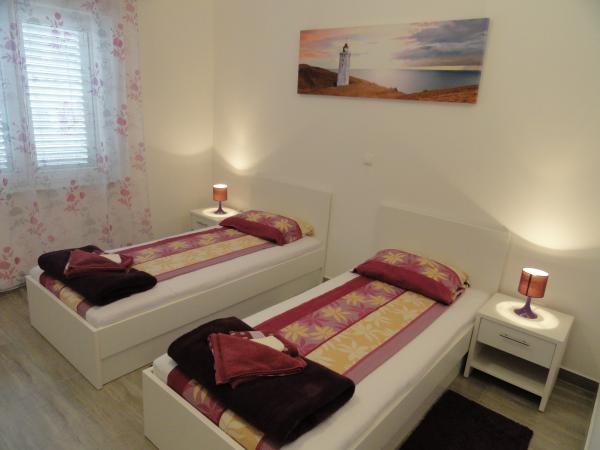 Casa are doua apartamente si trei camere. Apartamentele și camerele sunt moderne și decorate cu gust și situate într-o casă care a fost complet renovată în 2014. În curte există o piscină comună cu zonă de plajă. Fiecare apartament și cameră are propriul aer condiționat. Apartamentele și camerele noastre sunt la 300 de metri de plaja Zlatna luka și la 400 de metri de plaja din portul de agrement Dalmacija și la 10 minute de mers pe jos de centrul orașului Sukošan.
