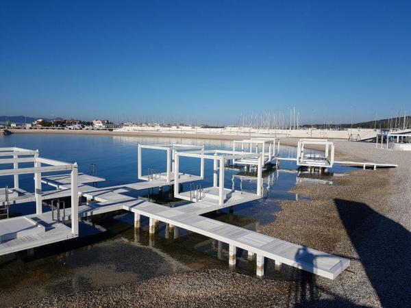 Casă cu curte împrejmuită lângă portul D-Mol. Complet mobilată și climatizată, potrivită pentru familii cu animale de companie. Duș în grădină, grătar, cartier liniștit cu trafic redus. Casa este situată la trei minute de mers pe jos de prima plajă și la cinci minute de mers pe jos de centrul orașului. Parcare pentru o mașină în curte sub un baldachin. Umbră naturală în curte cu o masă la umbră. Mobilier de grădină. Internetul și lemnele pentru grătar sunt gratuite.