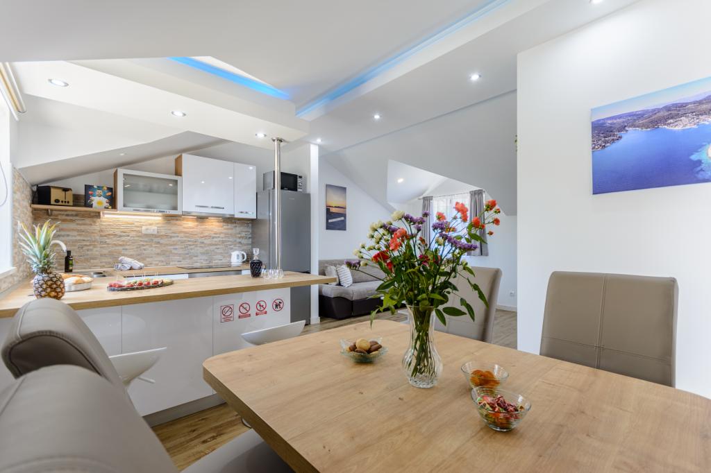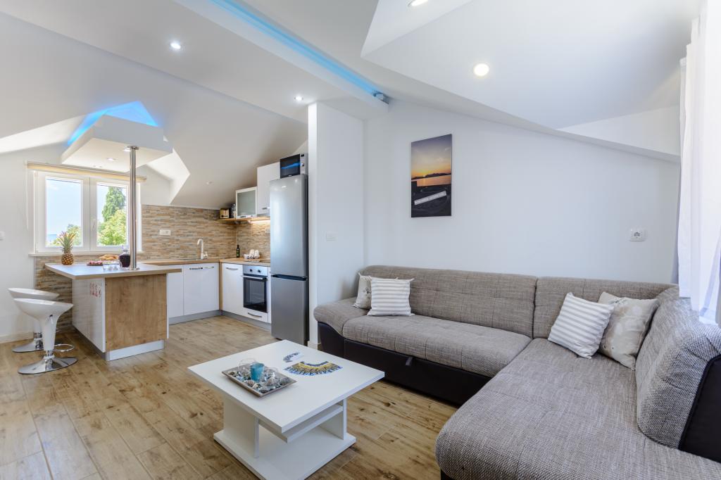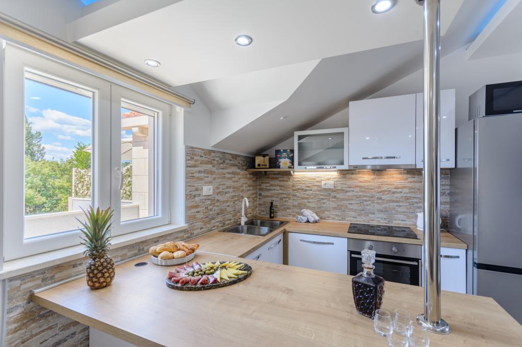 Bine ați venit în apartamentul nostru fermecător situat în centrul orașului Sumartin, pe frumoasa insulă Brač. La doar 100 de metri de mare, apartamentul oferă combinația perfectă de confort și comoditate. Apartamentul poate găzdui până la 5 oaspeți (4+1) și este ideal pentru familii, cupluri sau prieteni care doresc să se relaxeze și să se bucure de farmecul insulei. Bucurați-vă de un sejur liniștit la câțiva pași de plaje, restaurante și port. De asemenea, este disponibil un loc de parcare securizat. Așteptăm cu nerăbdare sosirea dumneavoastră!