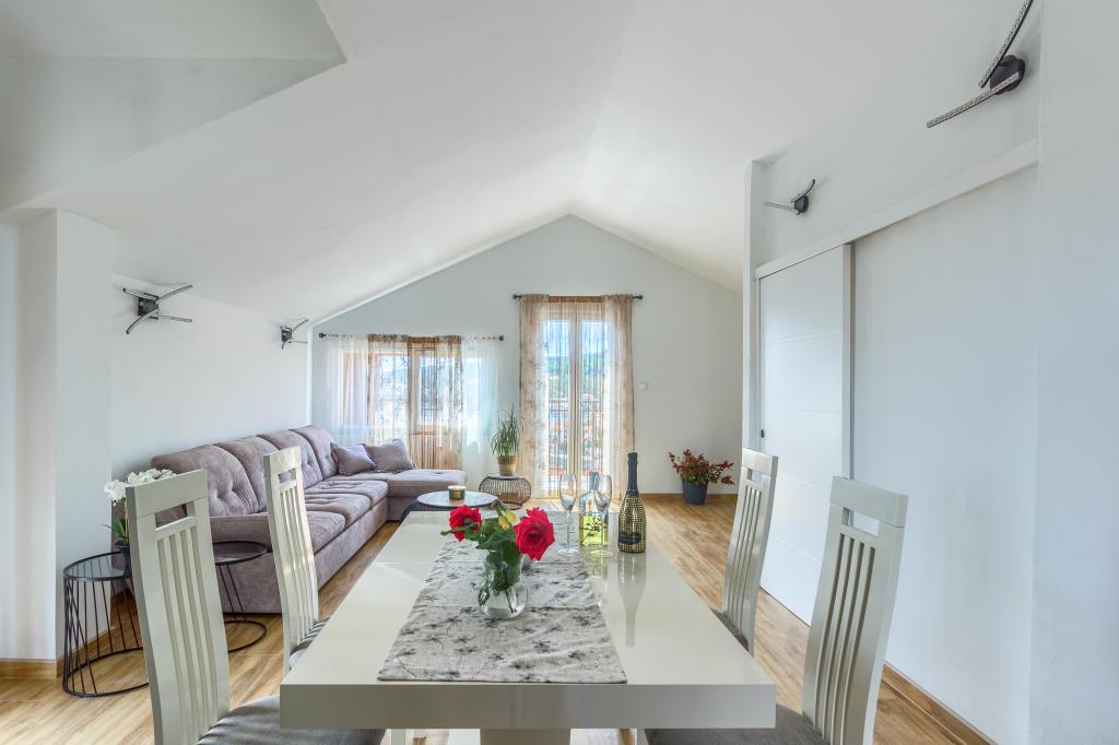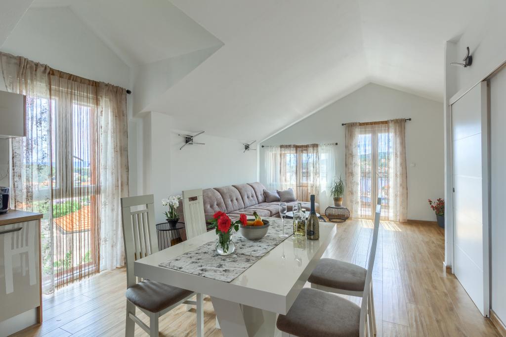 Apartamentele sunt situate într-o zonă liniștită din Sumartin, astfel încât vă puteți bucura de liniștea acestui loc frumos. Sunt înconjurate de o grădină cu plante și flori mediteraneene. Priveliștea este spectaculoasă, se întinde asupra întregului oraș, a mării și a munților. Este o combinație ideală de frumusețe și relaxare.