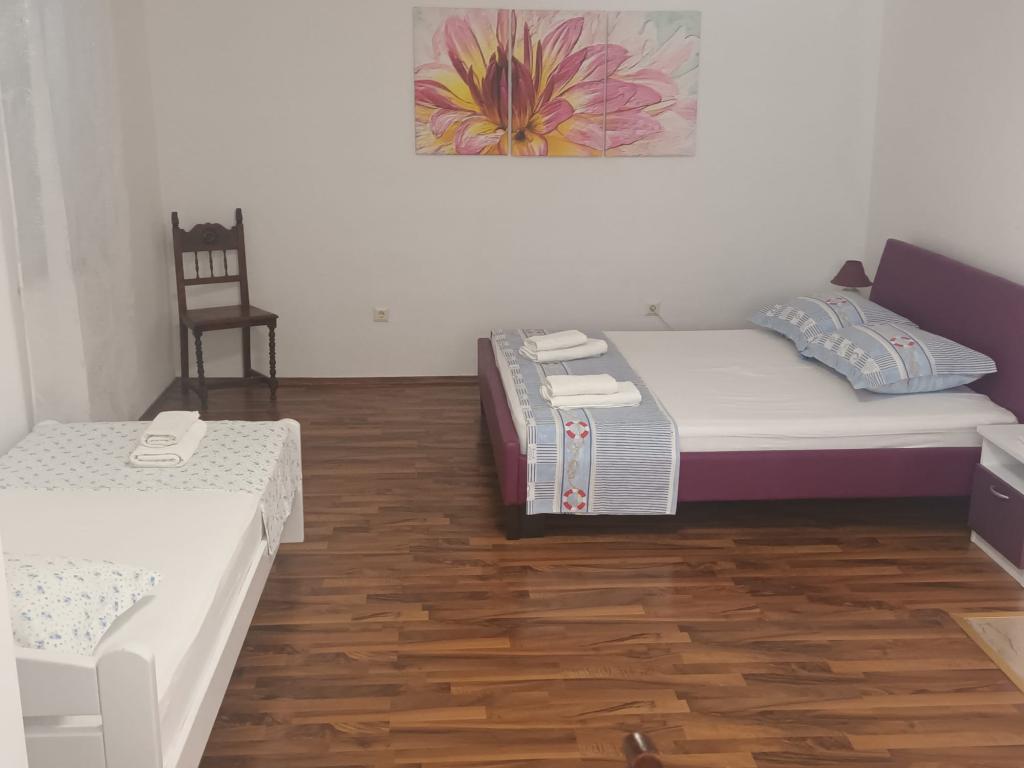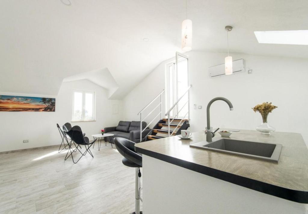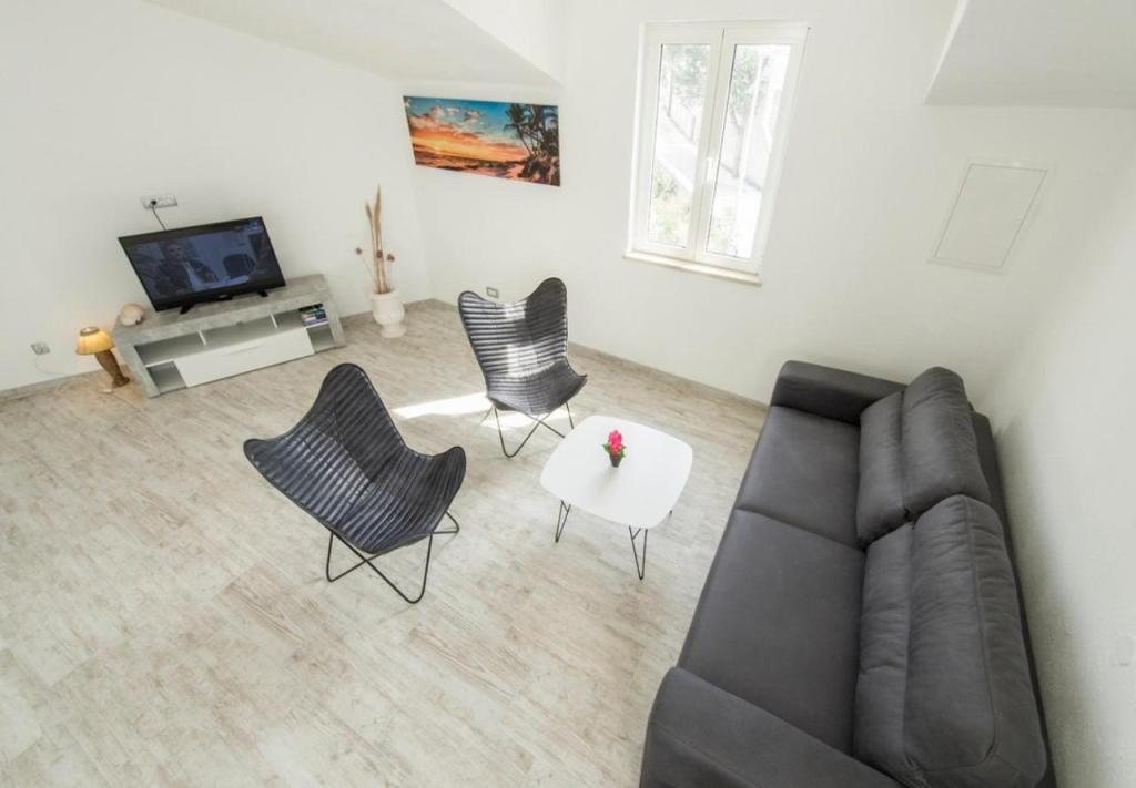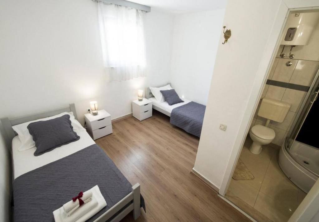 Casă foarte curată, bine amenajată și fermecătoare. Mai multe etaje și băi. Am fost 7, inclusiv 3 copii, cu suficient spațiu pentru toată lumea. Terasa superioară se bucură de o vedere pitorească asupra satului și a mării. Terasa de la parter este adăpostită de soare și are un șemineu pentru seri minunate de grătar. Piscina este curată și plăcută. Casa este aproape de mai multe plaje și de centru în 5 minute. Cartier liniștit. Proprietarii, Jaka și Vinko, sunt foarte atenți. Veți fi întâmpinați cu zâmbet, amabilitate și cu un brandy excelent și ulei de măsline produse chiar de ei. Recomandăm fără ezitare oricărui turist care dorește să fie primit cu respect și în contact cu adevărați dalmați care vor împărtăși povești frumoase cu dumneavoastră.