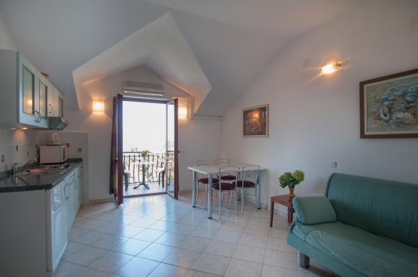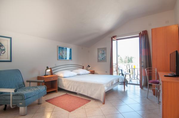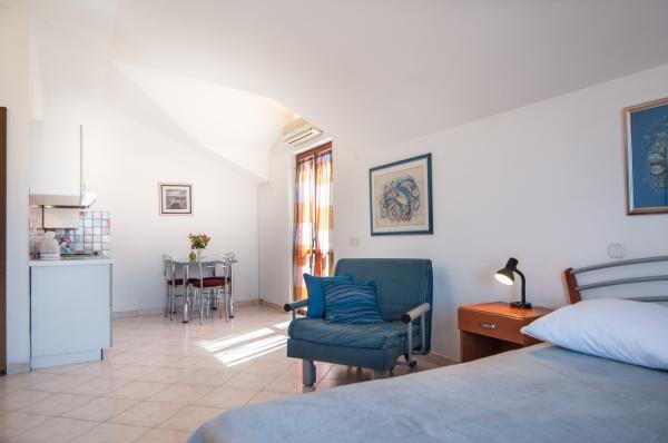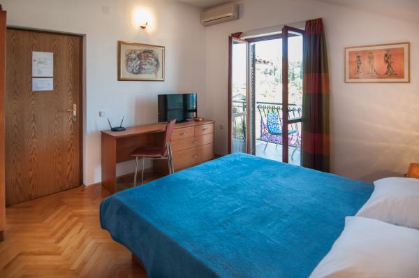 Dau în chirie patru unități într-o pozicioniranoj casă familială în partea de sud-est a centrului orașului vechi, într-o zonă liniștită și atractivă. Programul flexibil și facilități permit utilizarea unei combinații de unități. Toate apartamentele și camerele au o terasă sau balcon cu vedere la oraș și la mare, dotate cu aer condiționat, TV prin satelit și au acces la internet wireless. Există, de asemenea, un loc de parcare si curte gratar. mașină de spălat și facilități de călcat sunt disponibile la cerere. Centrul orașului și plajele sunt în termen de 5-10 minute de mers pe jos și magazine în 3 minute. În pădurea de pini din apropiere este o zonă de agrement echipate cu diferite aparate pentru exercitarea.