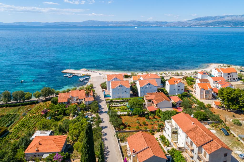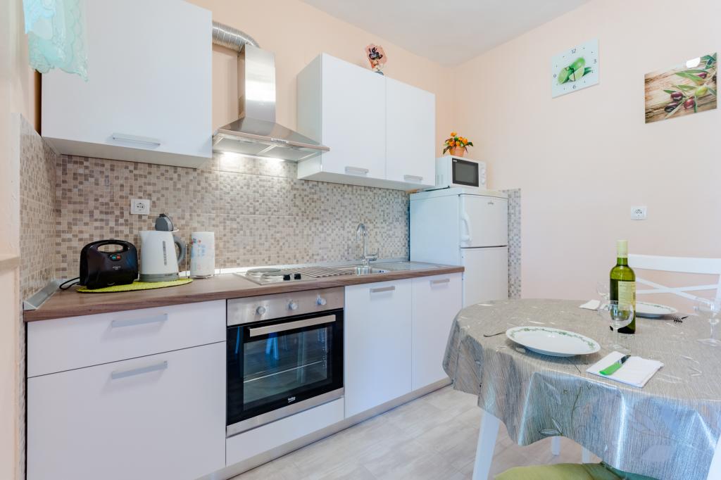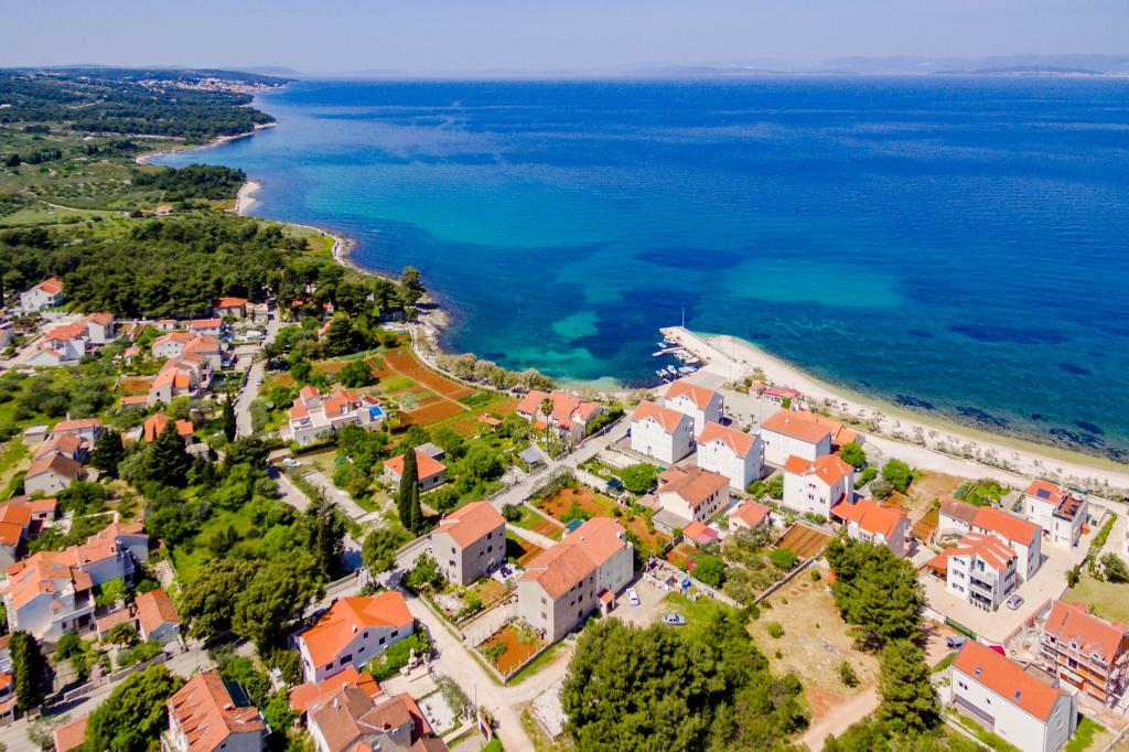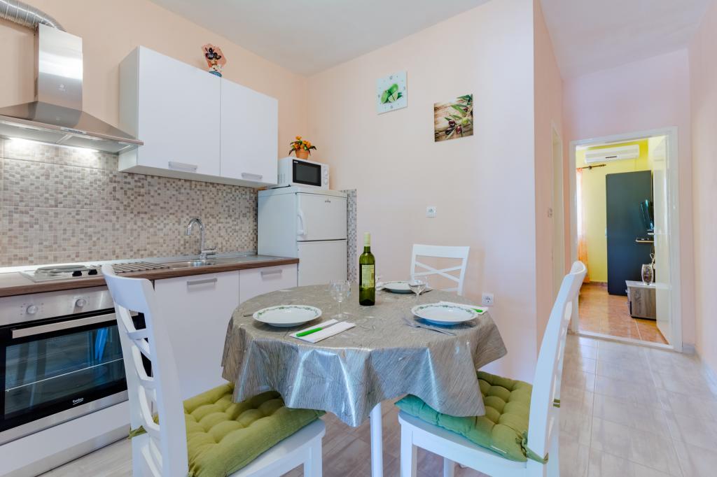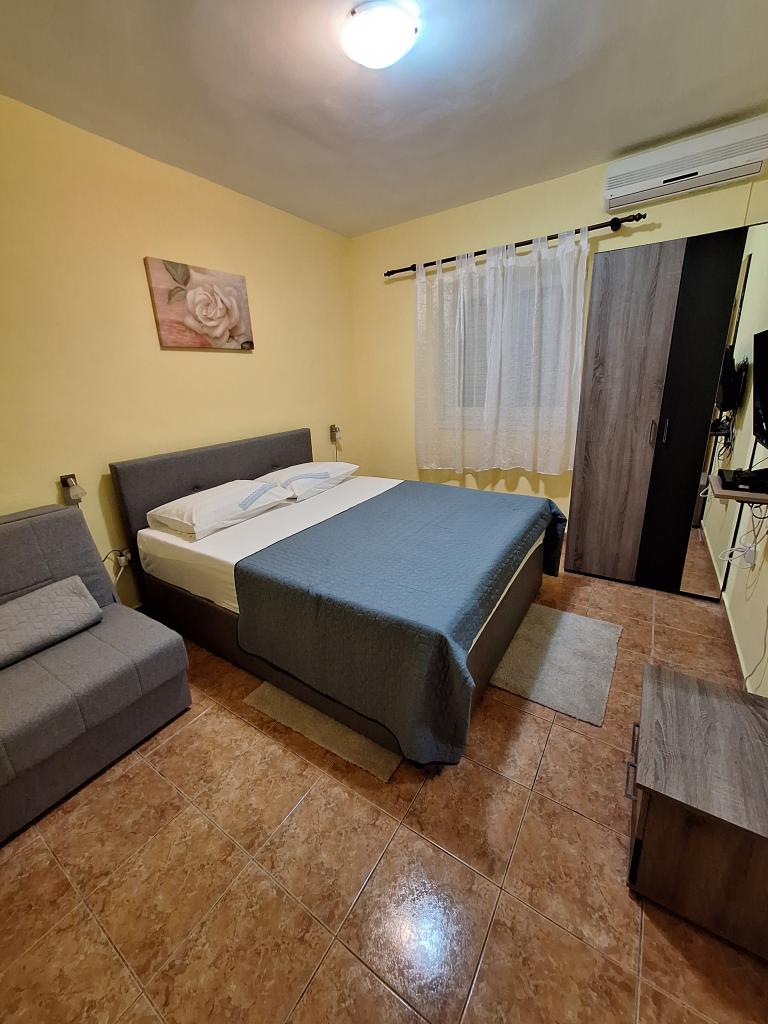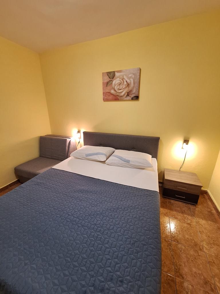 Clădirea este situată la 30 m de mare, o plajă cu pietriș, la 10 minute de mers pe jos de centrul orașului. Apartamentele noastre sunt complet echipate cu toate cele necesare. In fata blocului se afla o parcare mare cu umbra naturala. In curte se afla un gratar mare care poate fi folosit de toti oaspetii nostri. Toate apartamentele au terasă proprie. De asemenea, sunt dotate cu aer condiționat, TV, Wi-fi, satelit. Animalele de companie sunt binevenite (contra cost 7eur/zi). Taxa de turism nu este inclusa in pret. Avans obligatoriu (200 eur) la rezervare. Dorim tuturor o ședere plăcută și fără griji în apartamentele noastre. BINE ATI VENIT