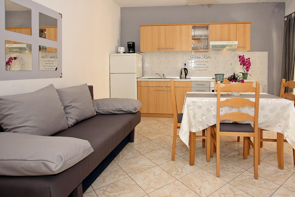 Citește mai mult Unități de cazareAvansul este de 200 EUR, care se plătește în cont, iar restul se plătește la fața locului, la sosire sau plecare. Oaspeții trebuie să părăsească apartamentul până la ora 10:00 la plecare și să intre după ora 16:00 la sosire. Vă rugăm să ne anunțați cu o zi înainte la ce oră intenționați să sosiți la apartament. Persoanele suplimentare care depășesc capacitatea de bază vor plăti un cost suplimentar de 10 EUR/zi de persoană. Șederea minimă în sezon este de 7 zile.