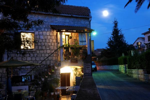 Apartamentele noastre sunt situate într-o casă tradițională din piatră din centrul Supetarului. În curtea din fața casei există o parcare privată pentru mașinile oaspeților noștri. Pe terasa din fața casei oaspeții au posibilitatea de a sta la umbră cu un pahar de băutură, cu vedere la mare. De asemenea, oaspeții au posibilitatea să pregătească mese pe grătarul situat pe terasa din fața casei. Plaja este situată chiar în fața casei, la 20 de metri. În apropiere se găsește o cafenea, restaurante, ofici poștale, chioșc și alte oferte diverse. Casa este situată într-un loc perfect pentru oaspeții care doresc confort atunci când sunt în vacanță. Totul este disponibil în câteva minute, fără utilizarea unei mașini, ceea ce înseamnă perfect pentru familiile cu copii mici.