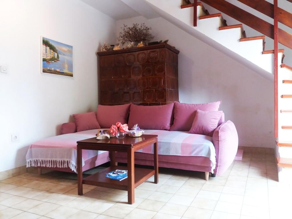 Vă petreceți vara într-un loc mic și liniștit, ideal pentru o vacanță reală. Casa are trei dormitoare, fiecare cu un pat dublu și un pat suplimentar pentru o persoană, și o bucătărie mare echipată, living și două băi. Vă oferim confidențialitate completă în mediul verde al plantelor mediteraneene. Curte cu terasă mare și grătar în aer liber. La doar 100 m de plaja de pietricele și magazine. Utilizarea aerului condiționat este gratuită! Parcare gratuită pentru mașini! Dragi oaspeți, sănătatea și siguranța dvs. sunt prioritatea noastră numărul 1, așa că vom dezinfecta complet casa înainte de sosirea voastră!